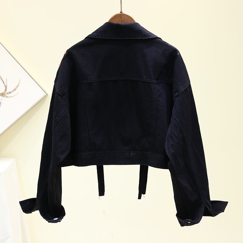 フラワー刺繍デニムジャケット レディース ショート丈 ジャケット アウター 春夏秋冬 ストリート 2カラー a2062