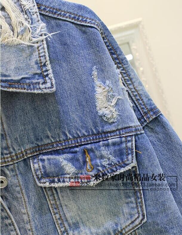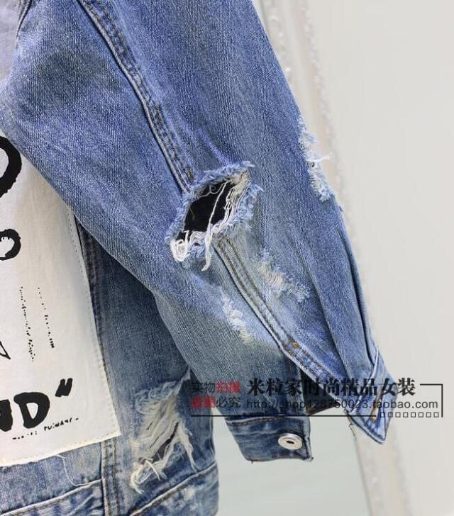ダメージデニムジャケット 英文レター ルーズ デニムジャケット 春秋 韓国 ヒップホップ ストリート系 a2075