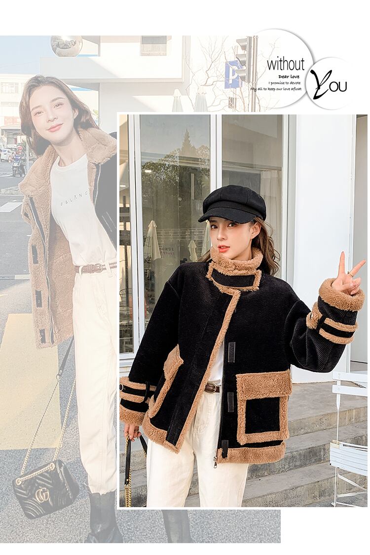 コーデュロイジャケット ボアコート ラムファージャケット ルーズ ワイルド バイカラー 秋冬 韓国 アウター a2082