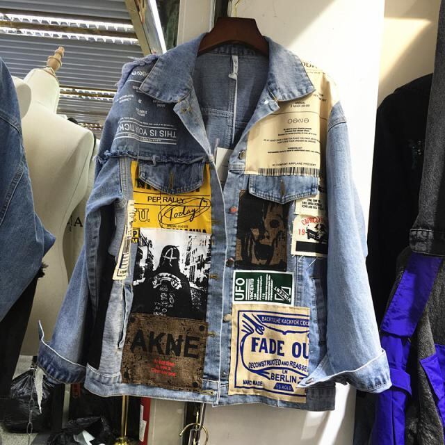 デニムジャケット パッチ生地 非対称 ルーズ 春秋 ジャケット コート アウター 韓国 ヒップホップ ストリート系 a2103