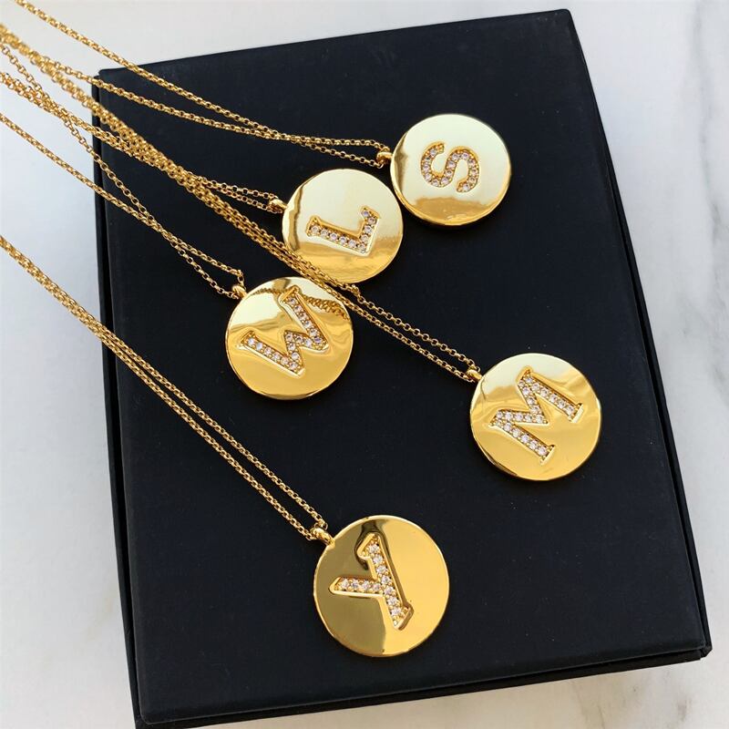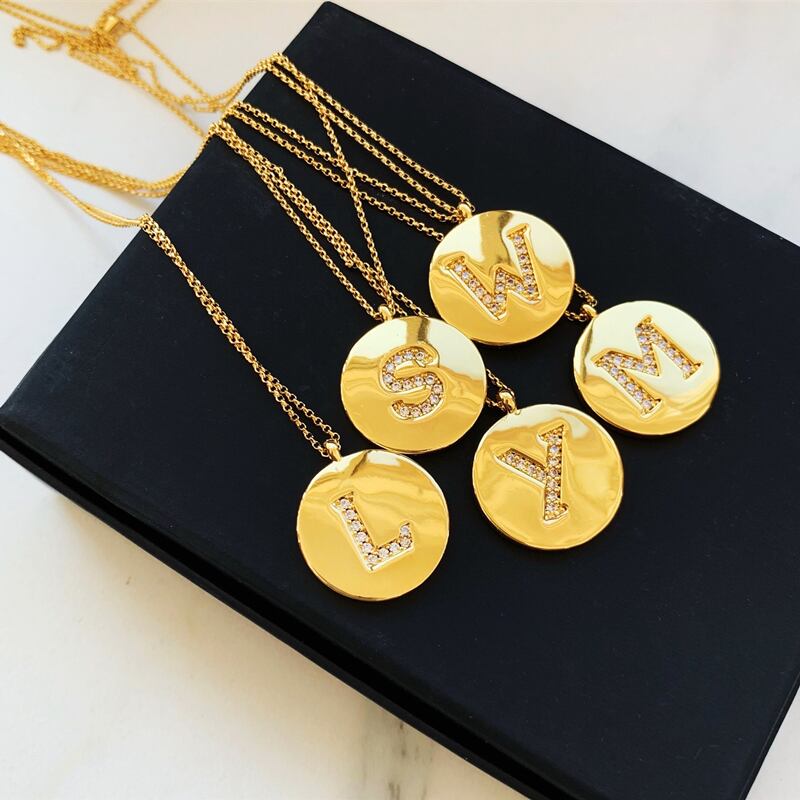 イニシャルネックレス ロングネックレス シンプル レターディスクプルネックレス a2136