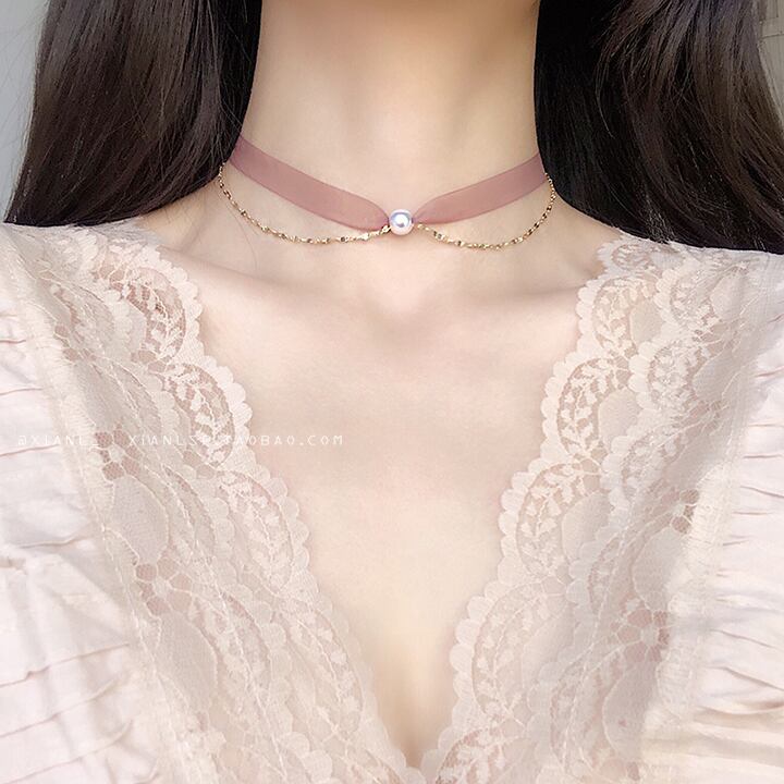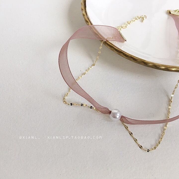 女性らしいフェミニンデザインが可愛いパールリボンネックレス♡
