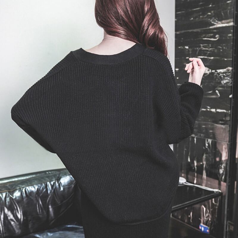 【セットアップ】Vネックルーズカーディガン+ニットスカート ニット ツーピース レディース 秋冬 ルーズ バットスリーブ 3カラー a2261