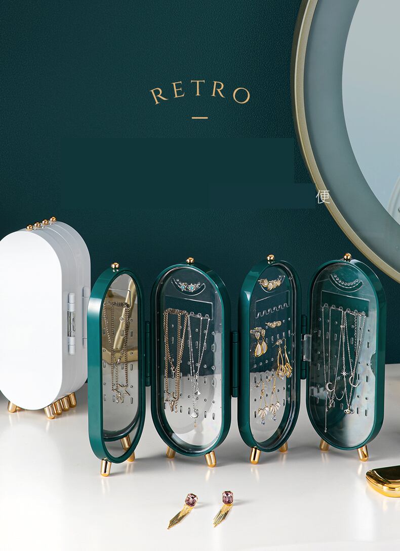 鏡付きのレトロデザインジュエリースタンドボックス