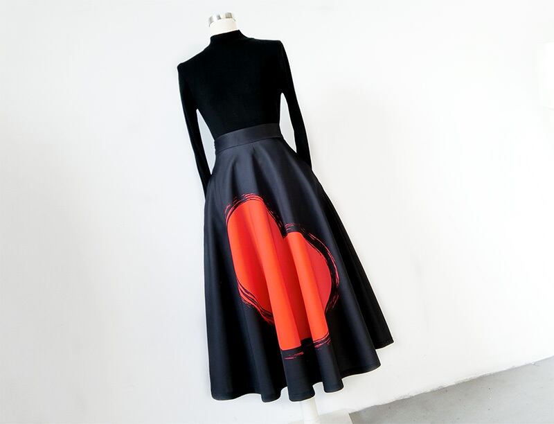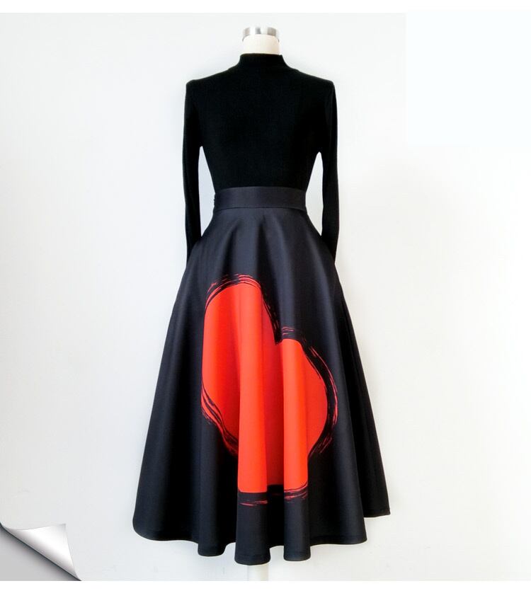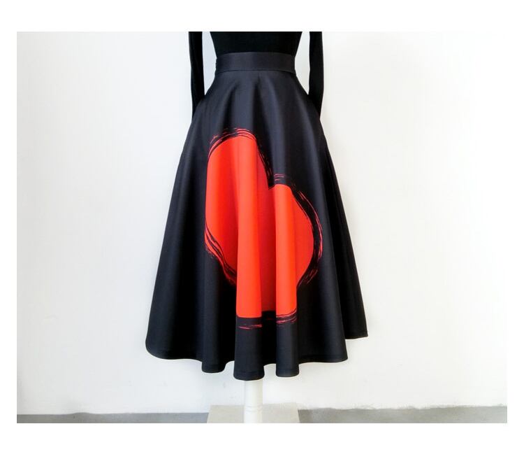 中央に大きなハート柄が描かれたフレアAラインスカート