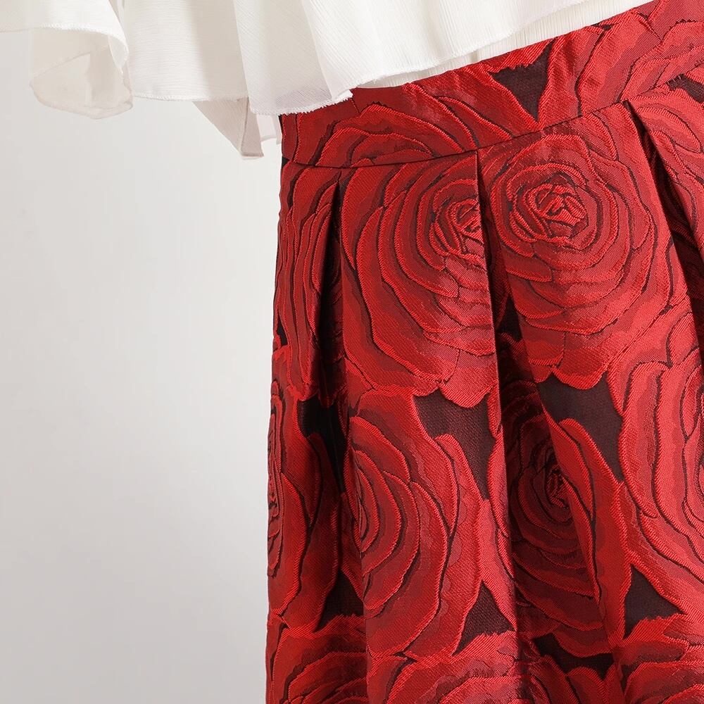 Aライン フラワースカート ミドル丈スカート パフスカート アンブレラスカート ハイウエスト 春 秋 冬 a2435