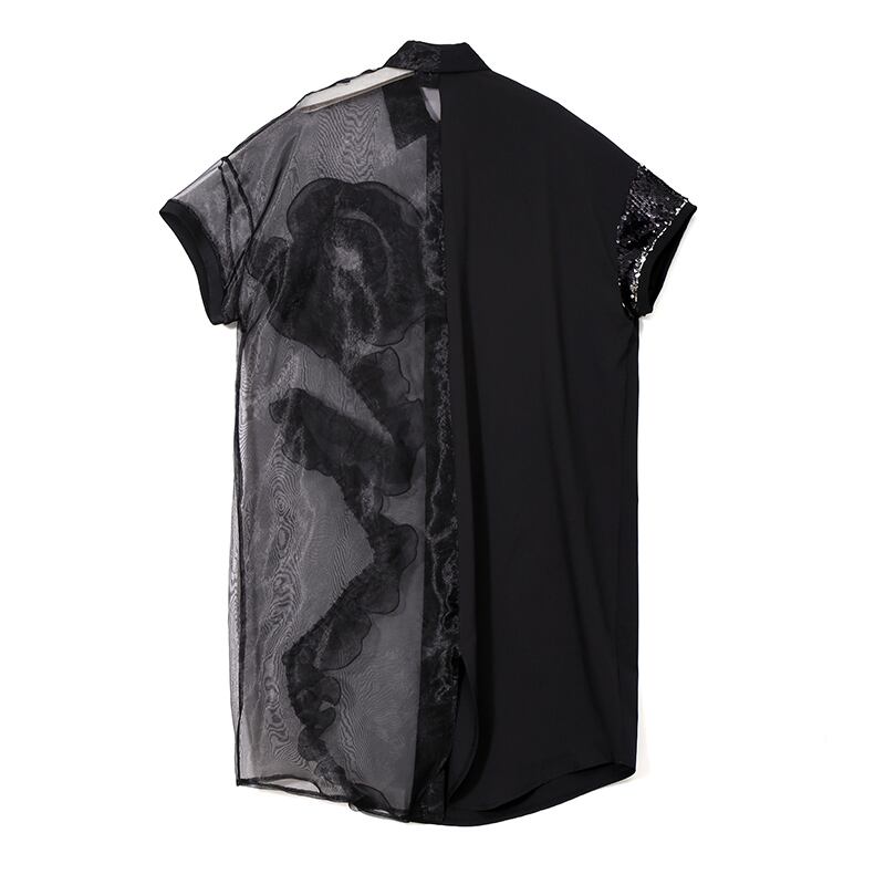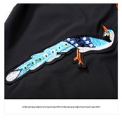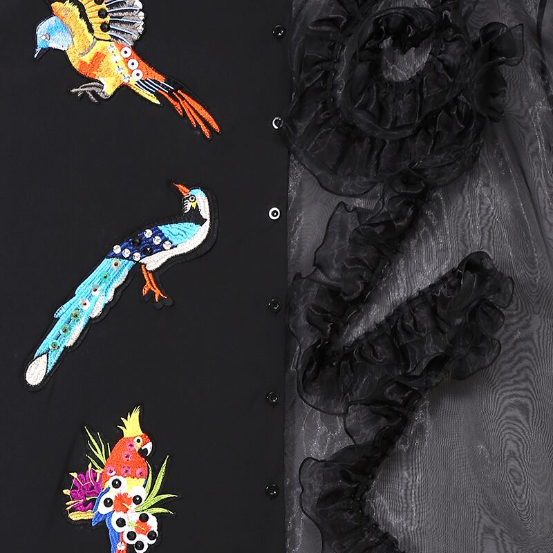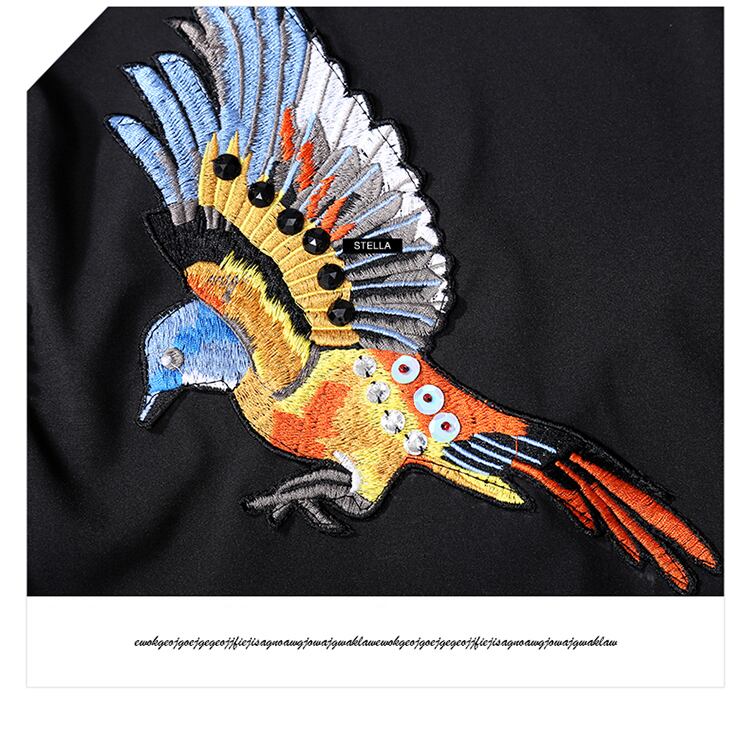 オウム刺繍ワンピース フラワーオーガンザステッチシャツスカートドレス スクエアカラー モード系 ストリート ブラックコーデ a2461