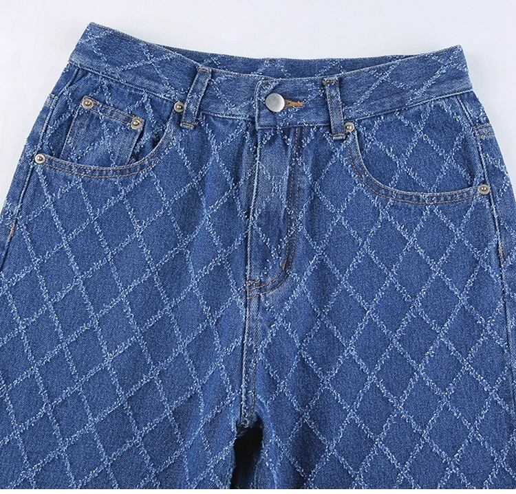 ダイヤモンド格子柄のオシャレなストレートジーンズ