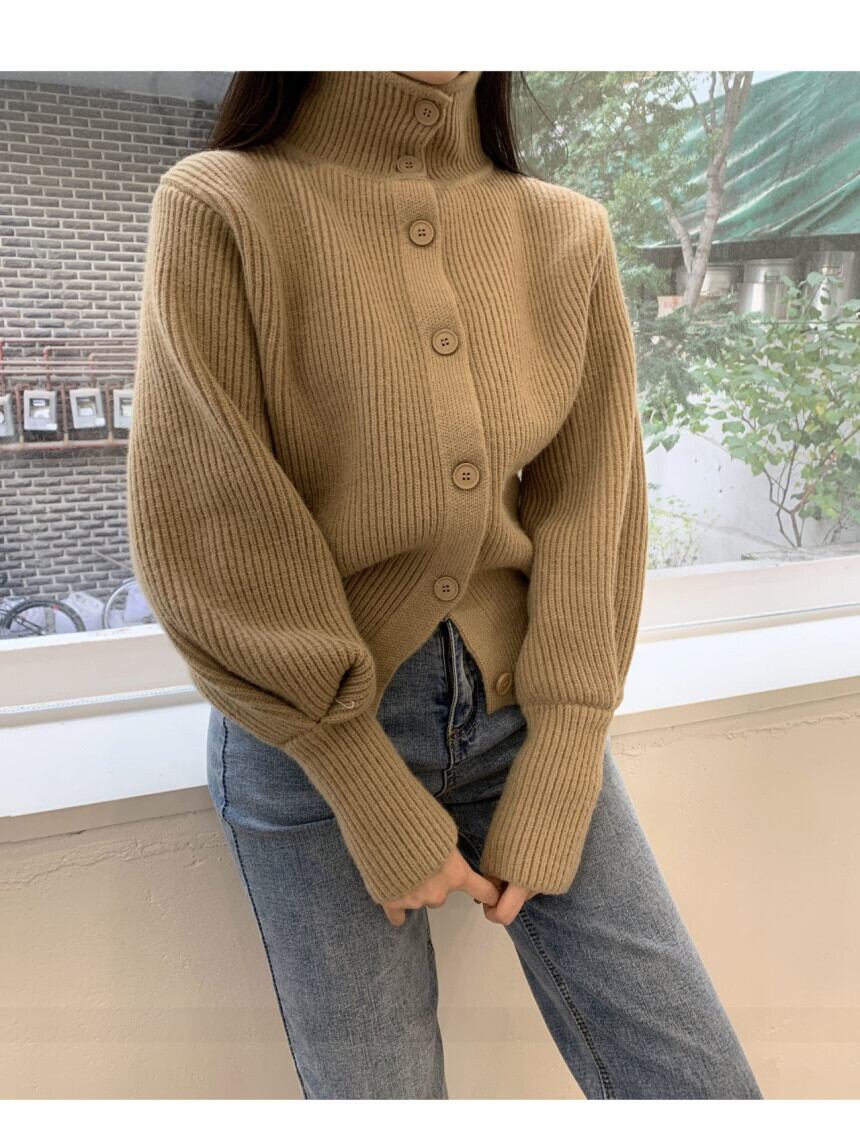 ハイネック ニット カーディガン ハイネックセーター ルーズ 長袖カーディガン 韓国 3カラー a2491