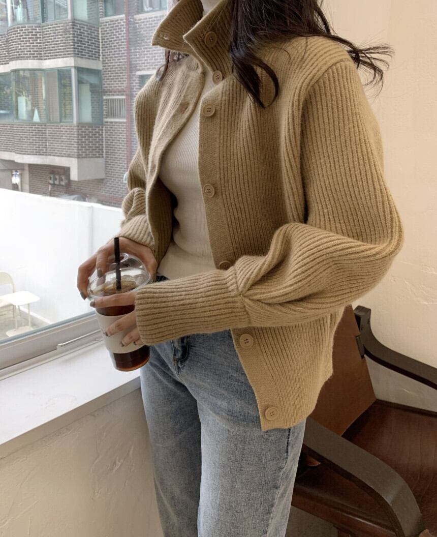 カーディガンでは珍しいハイネックタイプ