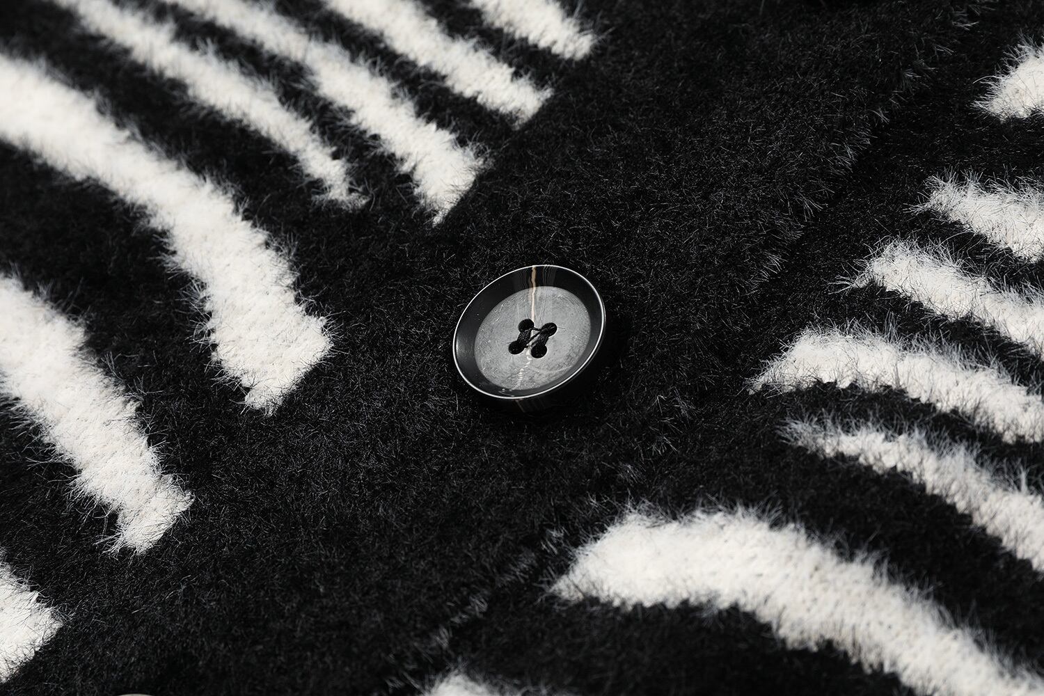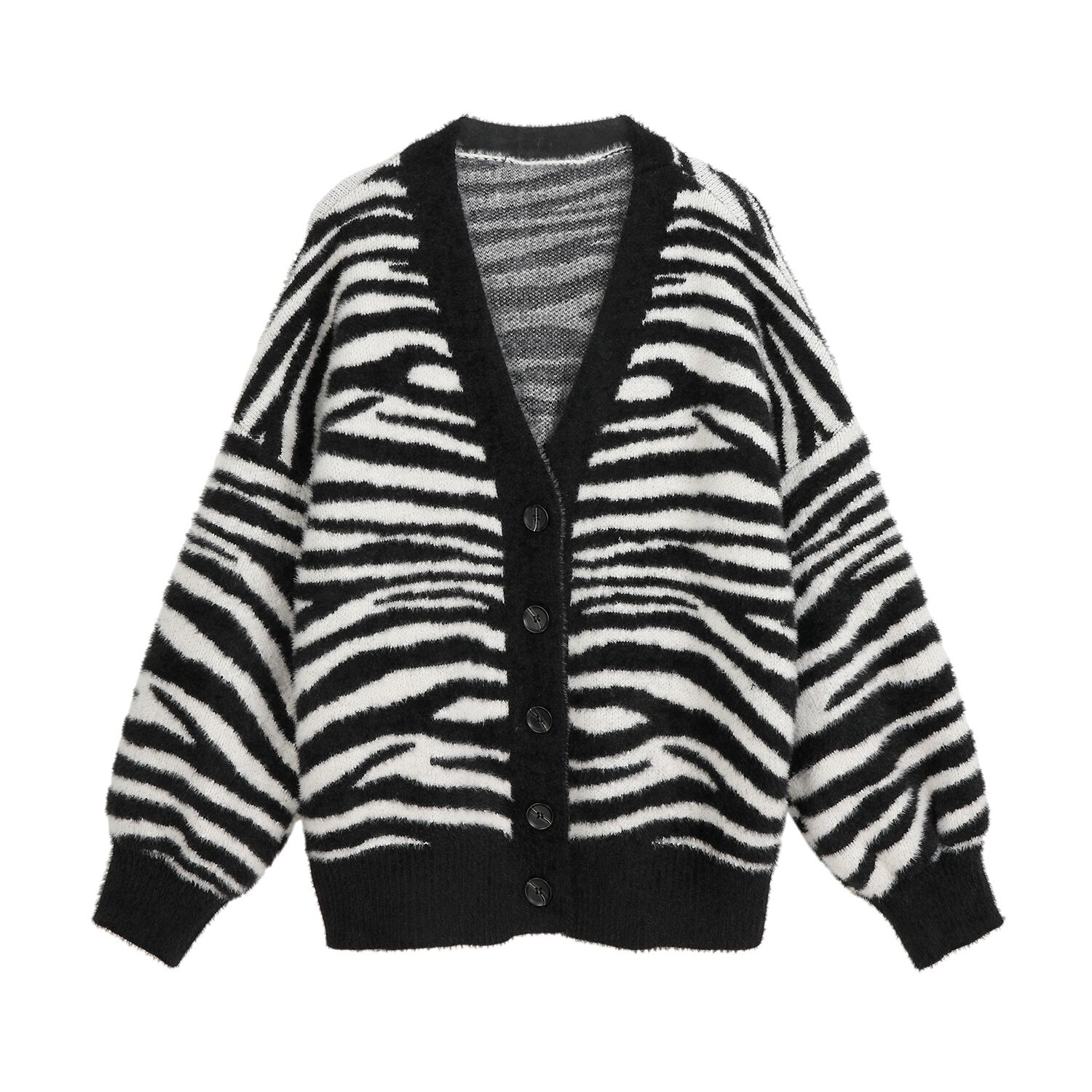 ゼブラセーターカーディガン Vネック カーディガン カジュアルセーターコート ウィメンズ 秋冬 シングルブレスト a2547