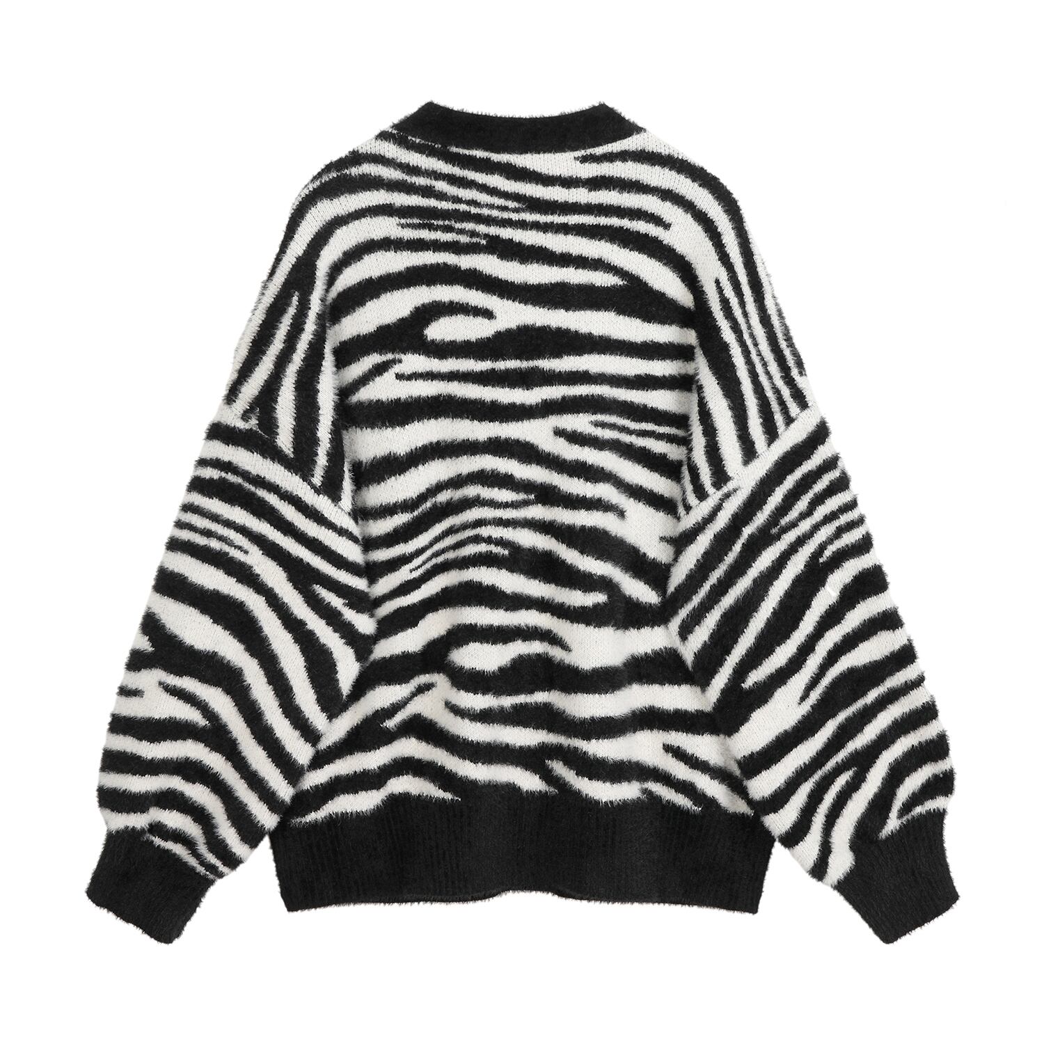 深めのVネックにルーズ感が可愛いゼブラセーターカーディガン