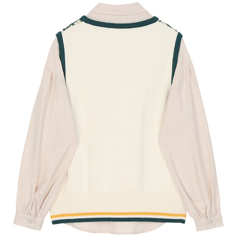 【セット】長袖リボンシャツ+チェックニットベスト