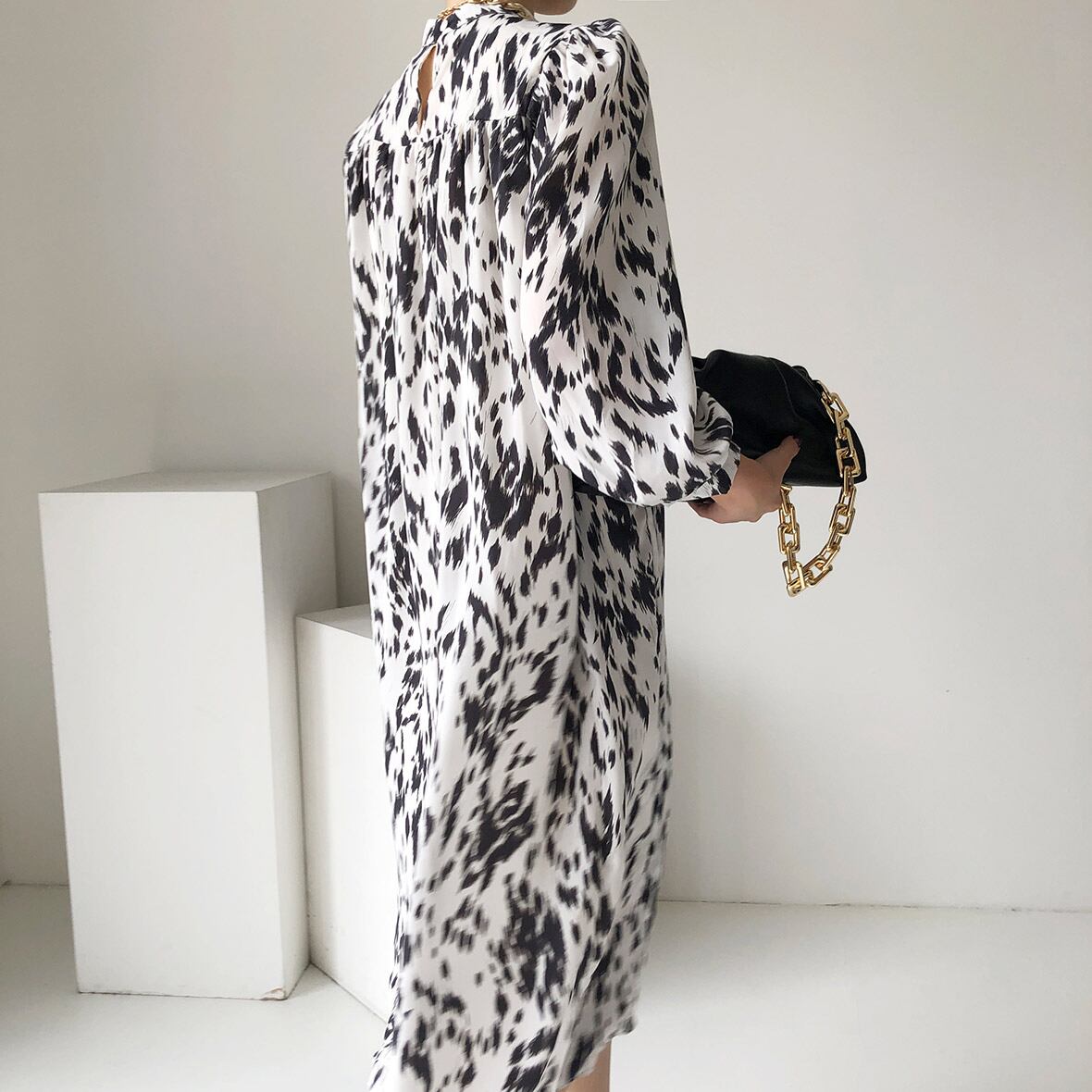 ダルメシアン柄プリーツワンピース