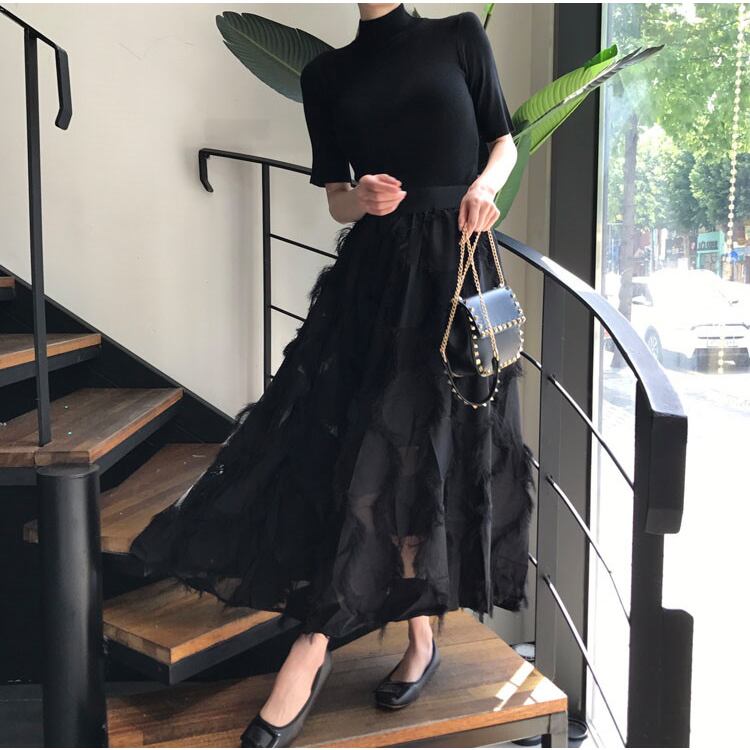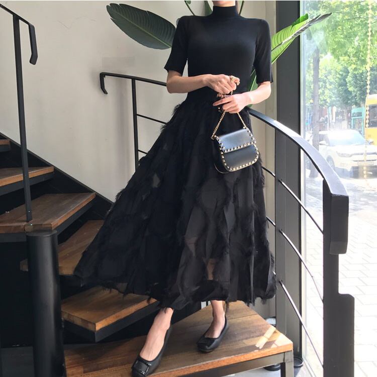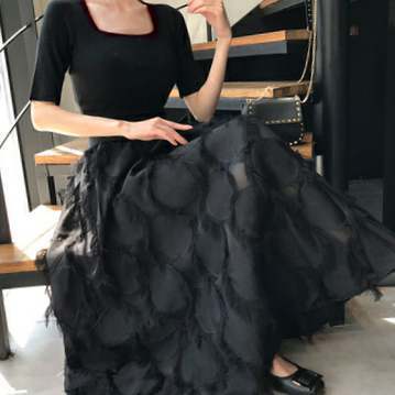 【セットアップ】ハーフスリーブトップス+メッシュロングスカート Aラインスカート ツーピース スーツ a2566