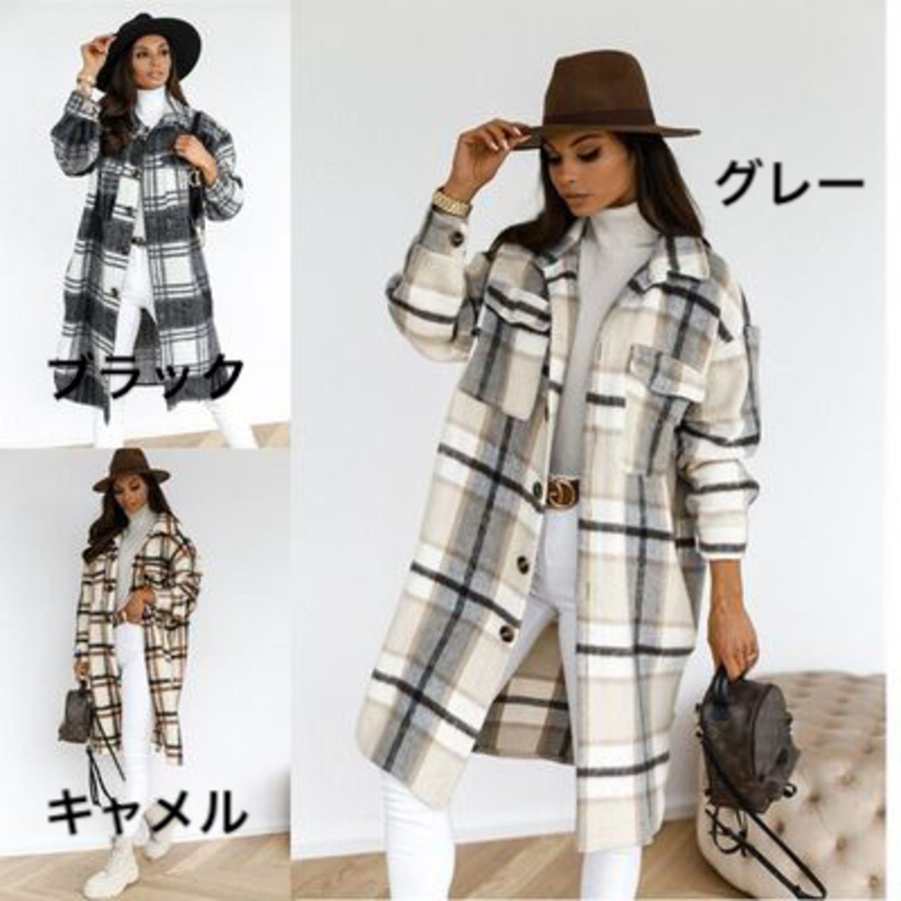 チェック柄ロングシャツジャケット ロングシャツ 秋冬 長袖 シングルブレスト 3カラー a2591