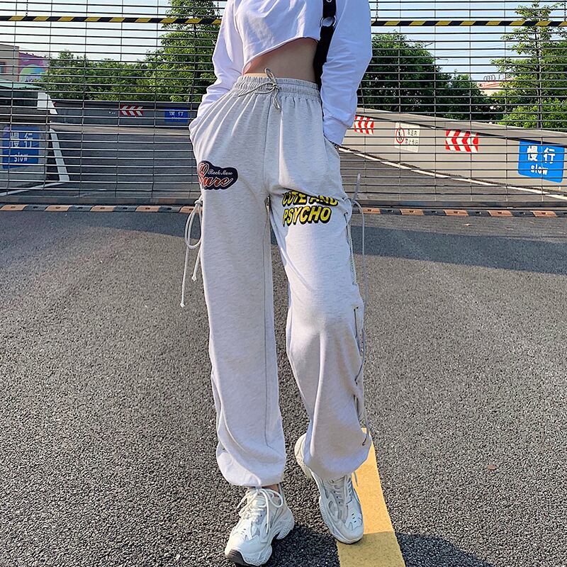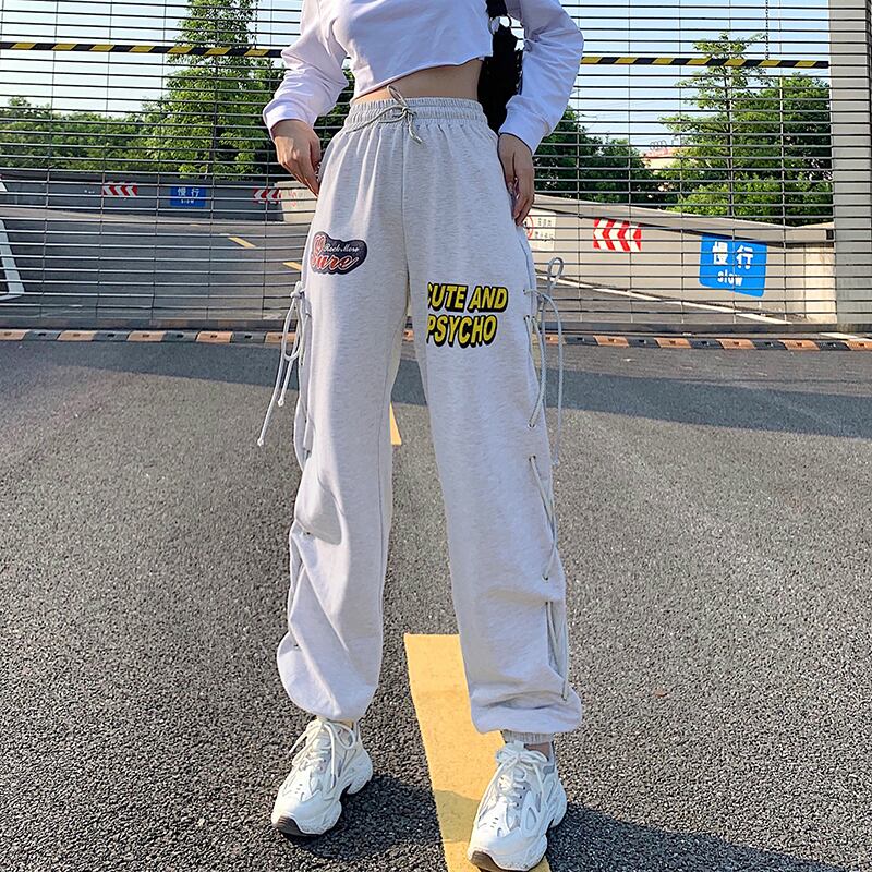 反射レースアップ スポーツカジュアルパンツ ハイウエスト スウェット ストリート デザインセンス ダンスパンツ a2595