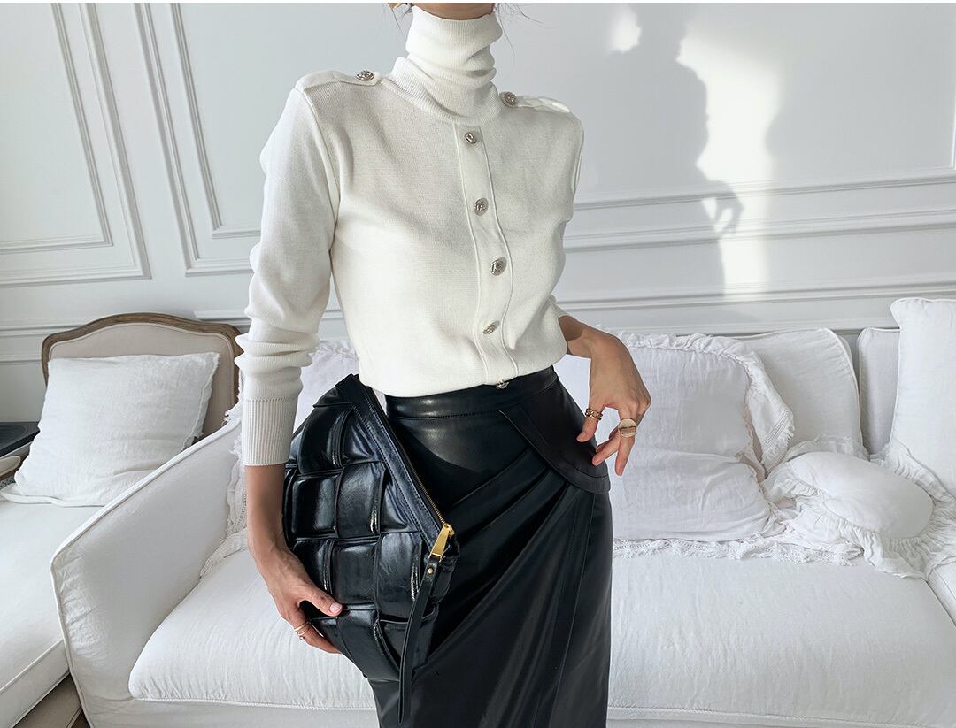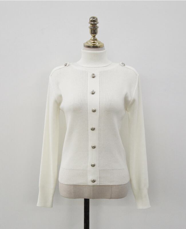 ハイネックニットセーター シングルブレスト エレガント 韓国 シック ニット セーター トップス a2615