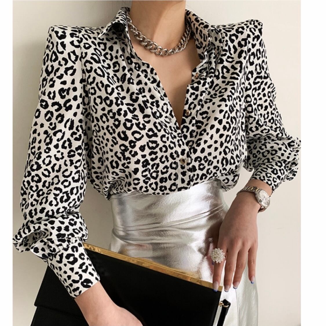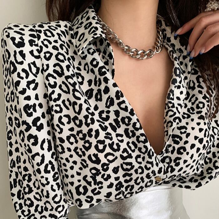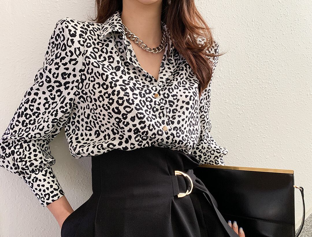 レオパード柄長袖シャツ 豹柄 シャツ ブラウス スーツカラー 韓国 シック 春 夏 秋 a2649
