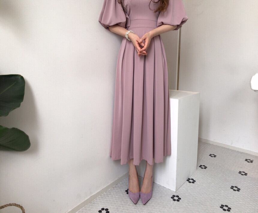 ふんわり袖がとても綺麗なプリーツワンピース