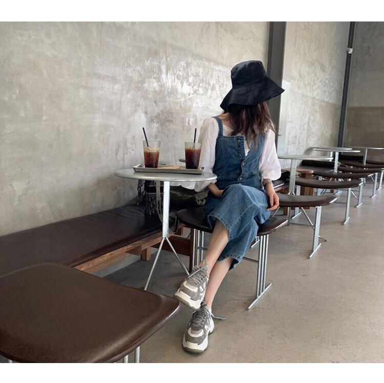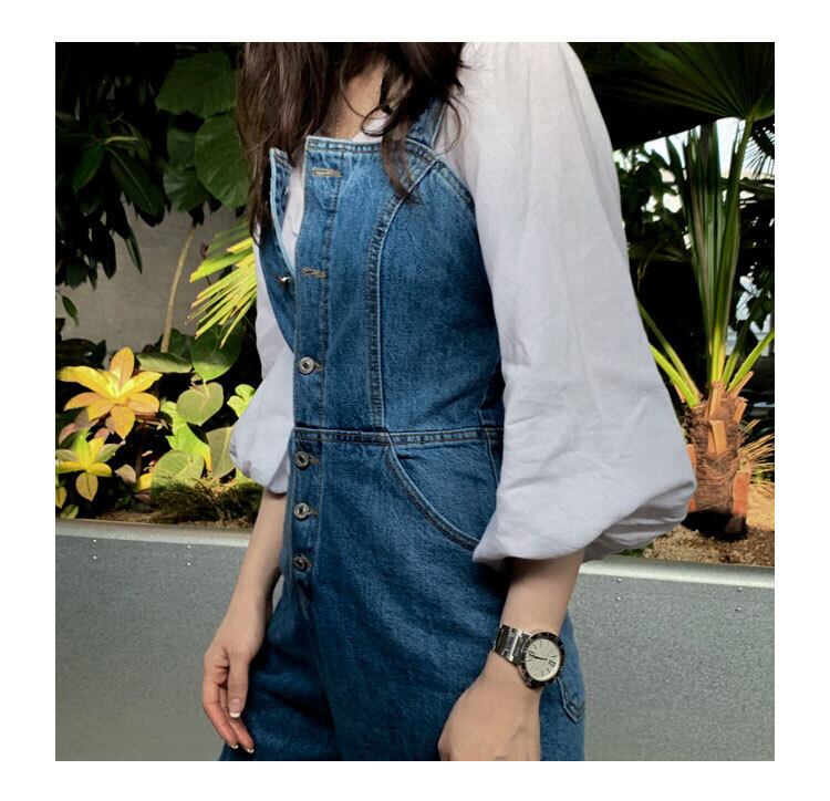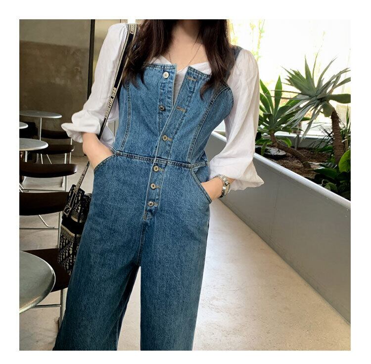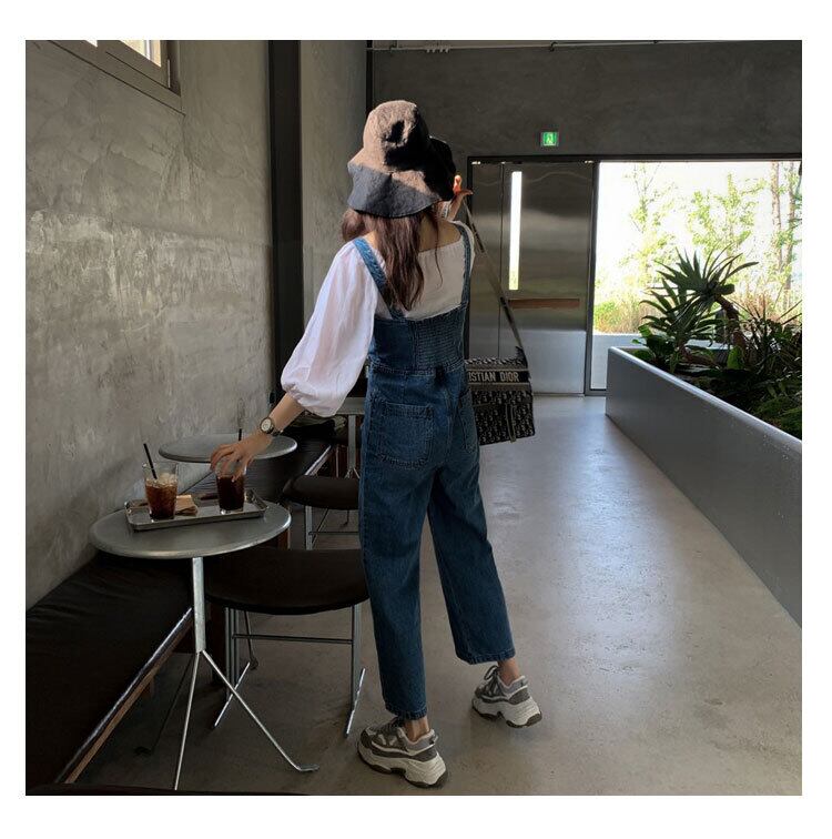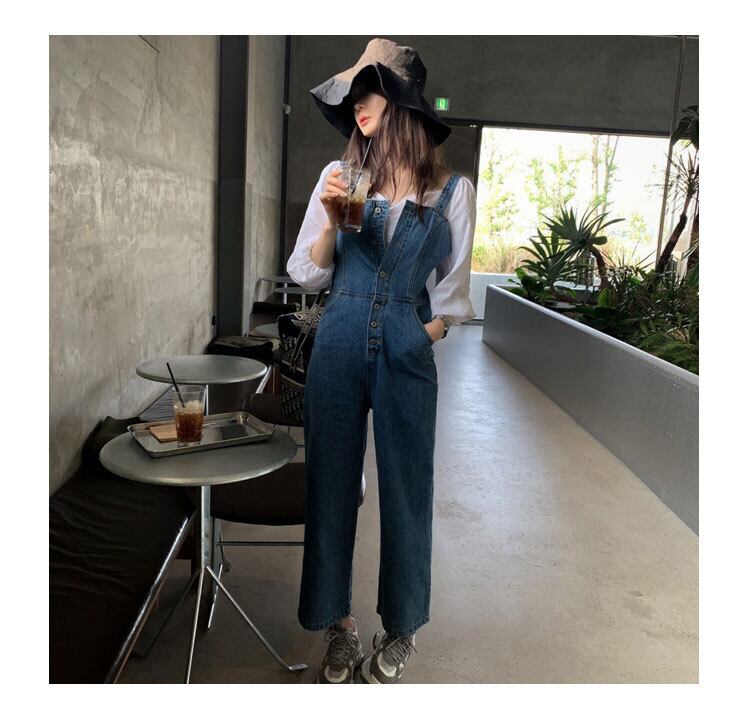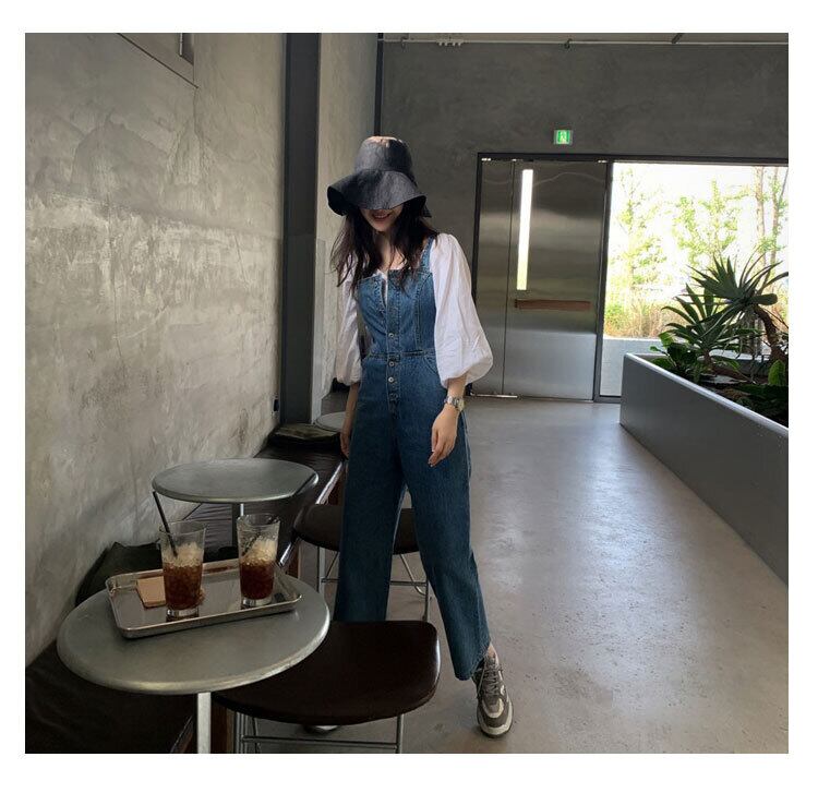 デニムオーバーオール ハイウエスト ルーズ デニム オーバーオール レトロ 9分丈 韓国 a2667