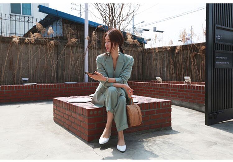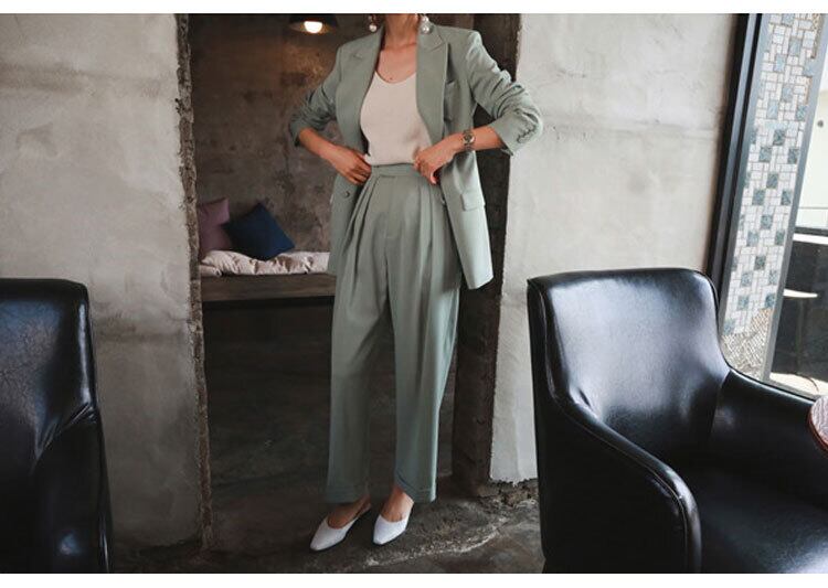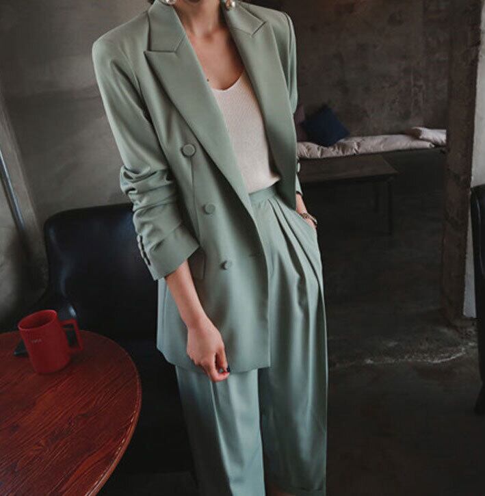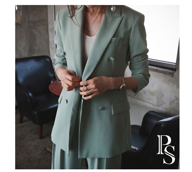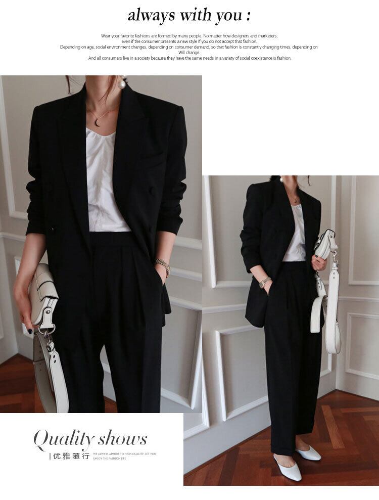 【セットアップ】ジャケット+ルーズパンツ スーツ ツーピース カジュアル トレンド ダブルブレスト 韓国 2カラー a2672