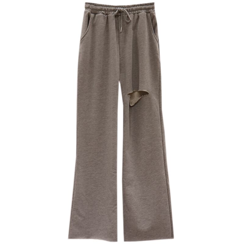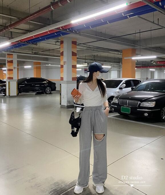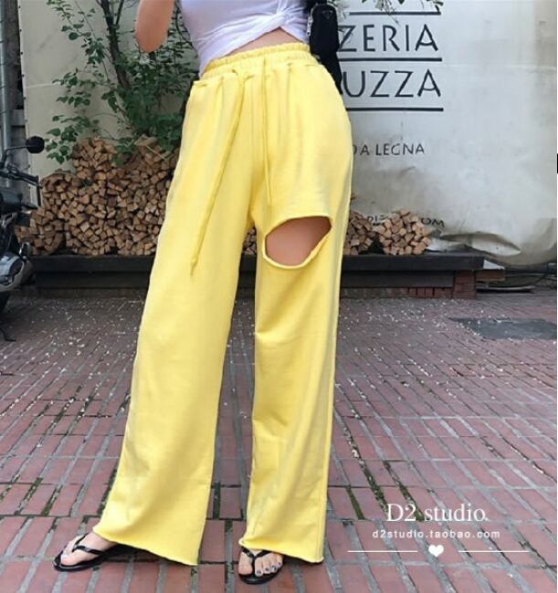 ダメージスウェットパンツ ストレートパンツ ワイドパンツ ハイウエスト ウエスタンスタイル 韓国 3カラー a 2687