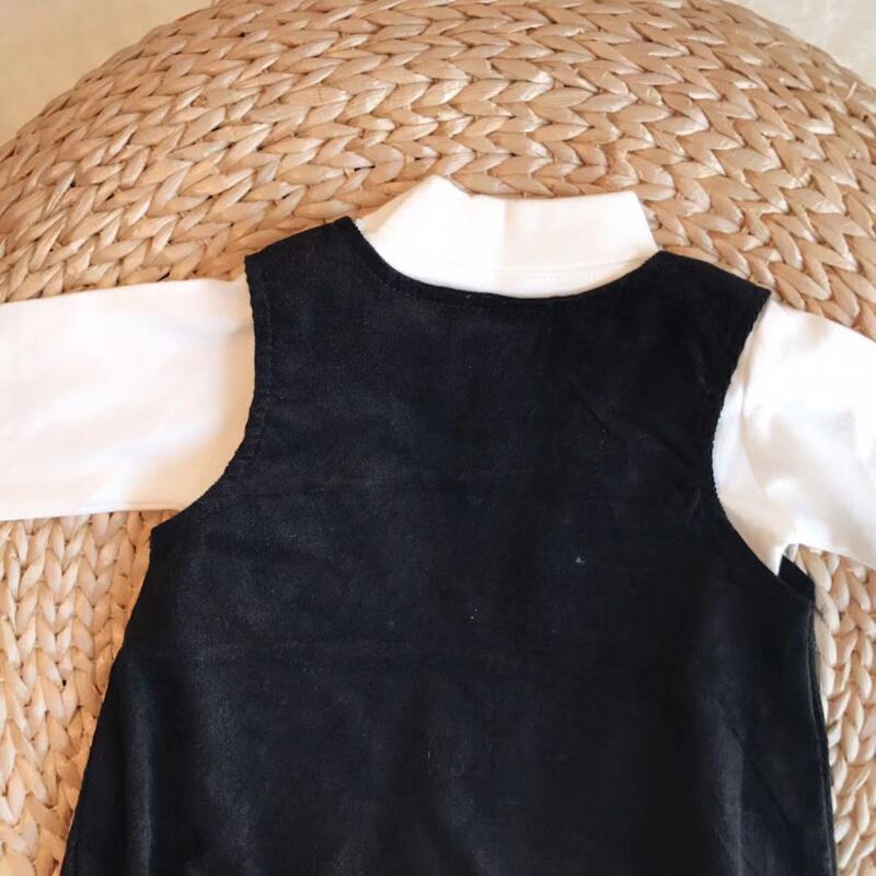 ブラックのベビーサスペンダーワンピースはコーデュロイ生地なので長くお使い頂けます^^