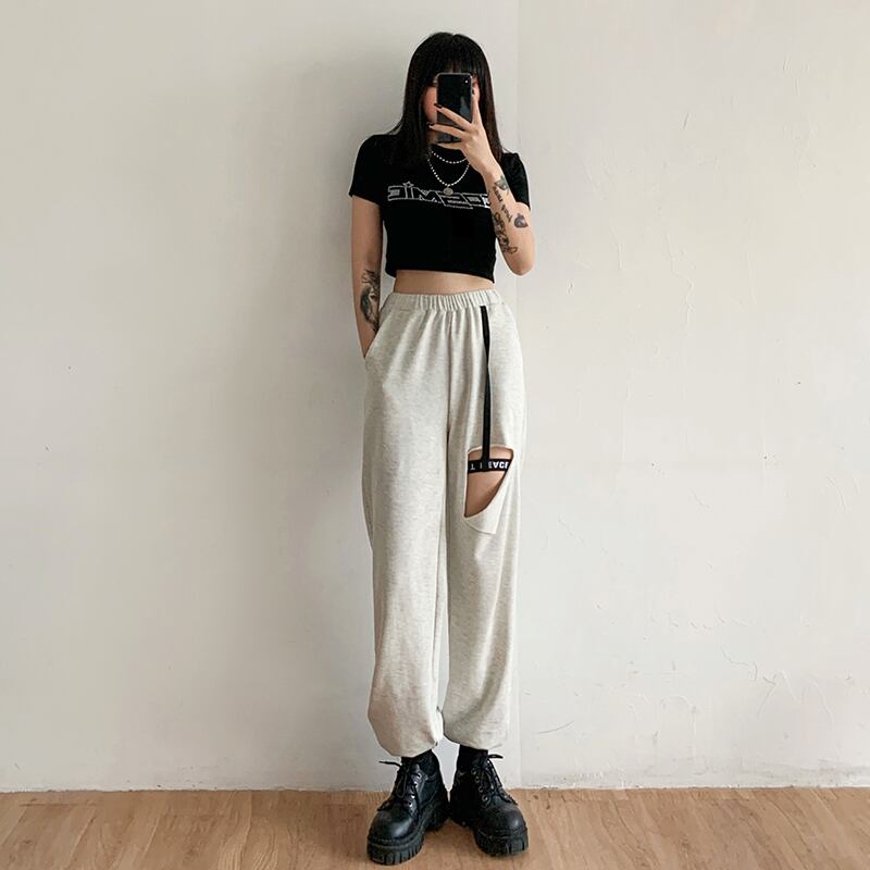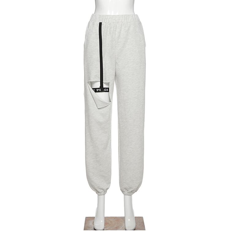 グレースウェットパンツ ダメージパンツ カジュアルパンツ スウェットパンツ ハイウエスト トレンド ルーズ ストリート a2701