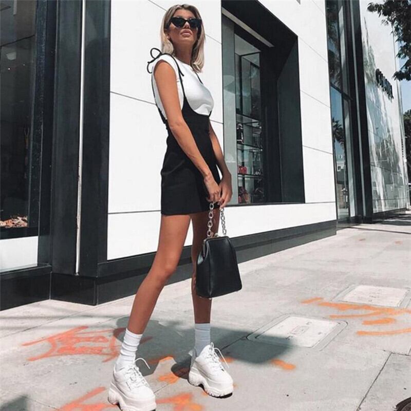 サスペンダースカート ハイウエスト ショルダーリボン ショート丈 a1370