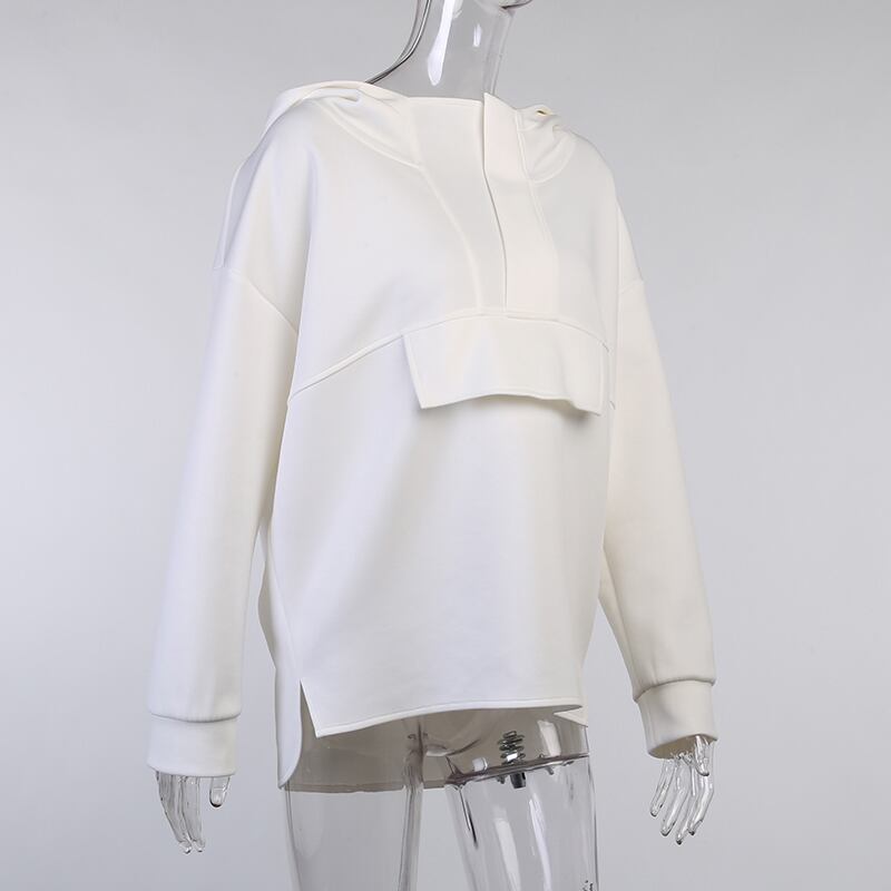 斬新なデザインがオシャレなフード付きプルオーバートップス