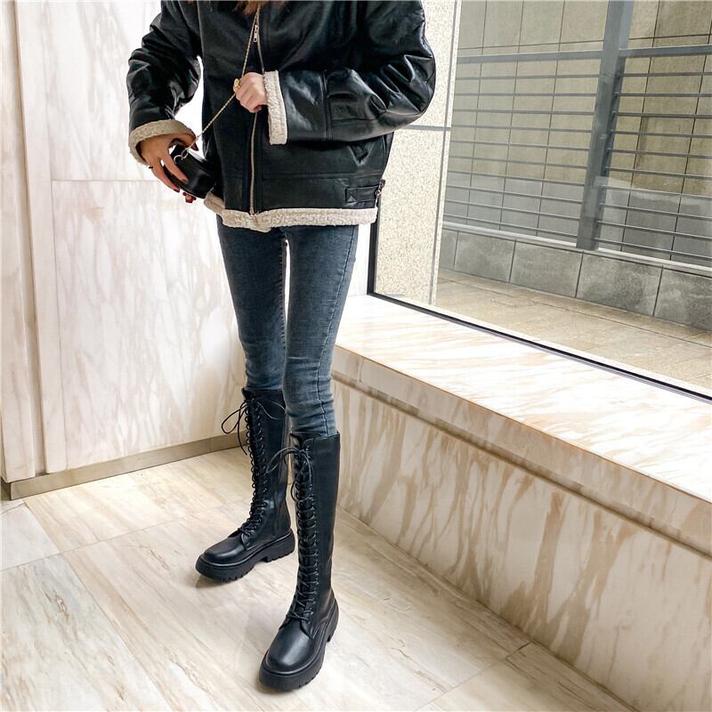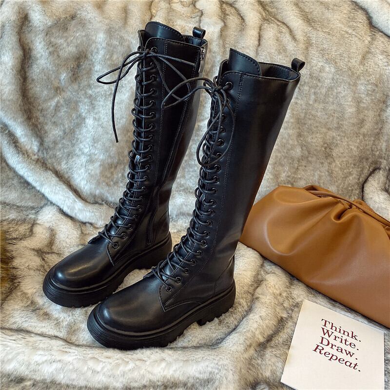 ロングブーツ ロコモティブブーツ ハイブーツ 編み上げブーツ レディース ブーツ マーティンブーツ ブリティッシュスタイル 2カラー a2739
