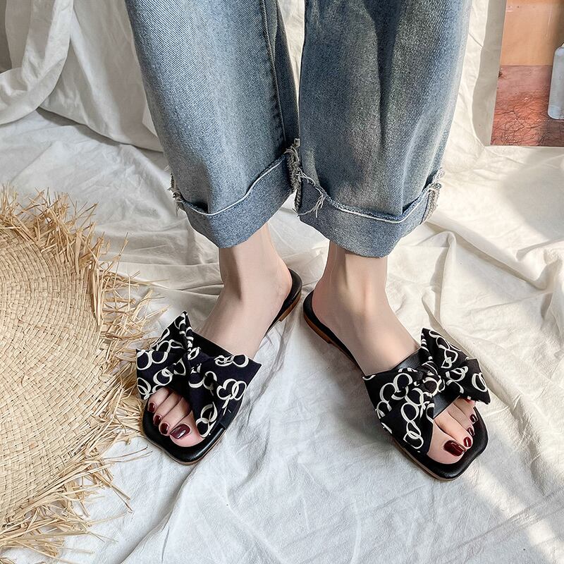 リボンフラットサンダル スリッパ サンダル ビーチサンダル トライフルサンダル オールマッチ 夏 2カラー a2765