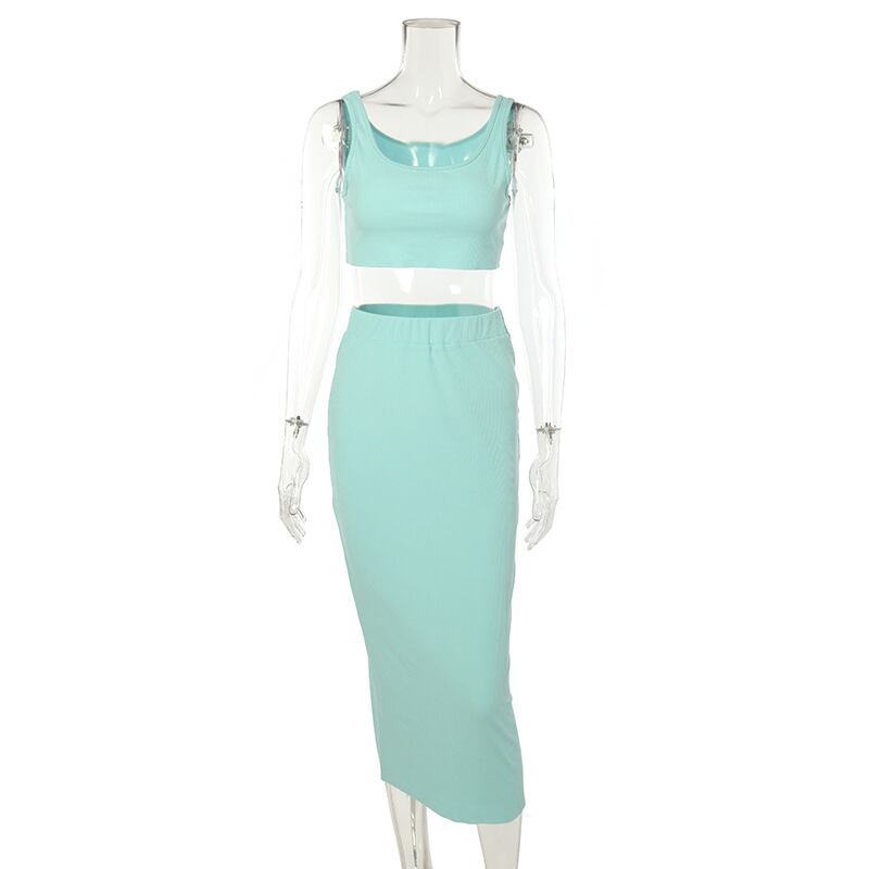 【セットアップ】ニットショートトップス+ハイウエストススカート ツーピース レディース スカート スクエアネック カジュアル ストリート系 アメカジコーデ セクシー ショート丈トップス 3カラー a2742