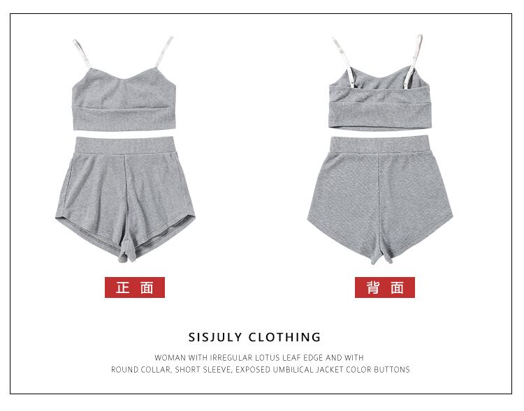 調節可能なトップスとハイウエストなショートパンツの2点セット