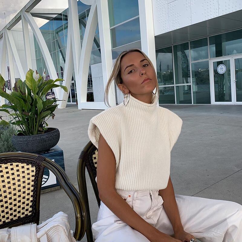 タートルネックセーター ニット セーター ルーズ ショルダーパッド ハーフスリーブ 大人綺麗 お仕事コーデ ノースリーブセーター アメカジコーデ 3カラー a2789