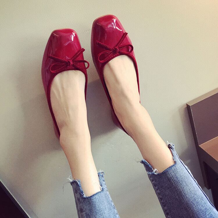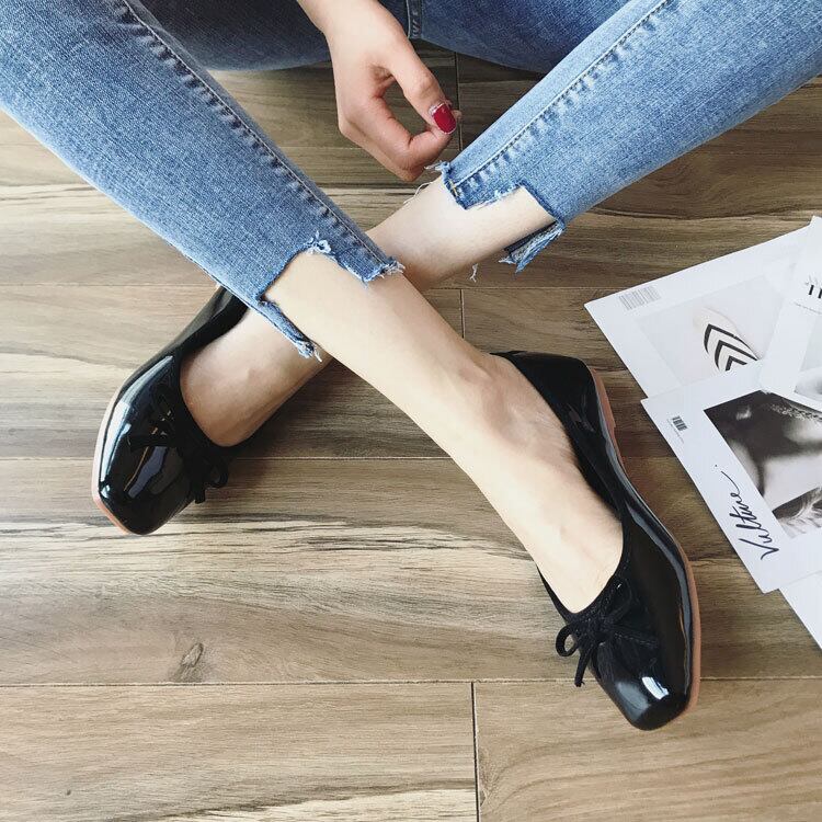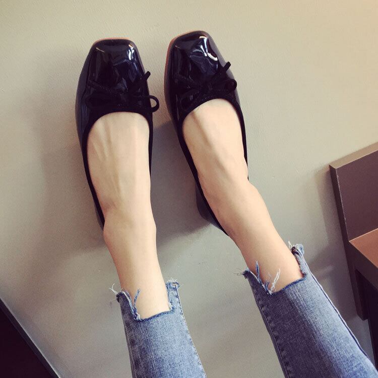 フラットシューズ パンプス カジュアル オールマッチ シングルシューズ レザーシューズ フラットヒール スクエアヘッド 3カラー a2797