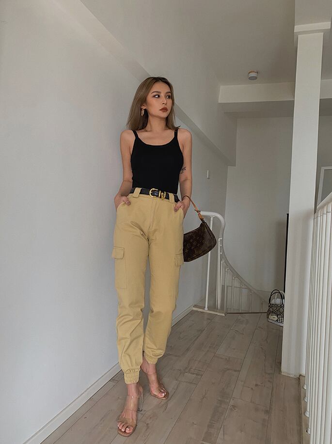 カーゴパンツ ビームパンツ 9分丈パンツ ルーズ ストレート ハイウエスト スリミング カジュアルパンツ ストレートパンツ 2カラー カジュアル ストリートファッション アメカジコーデ a2810