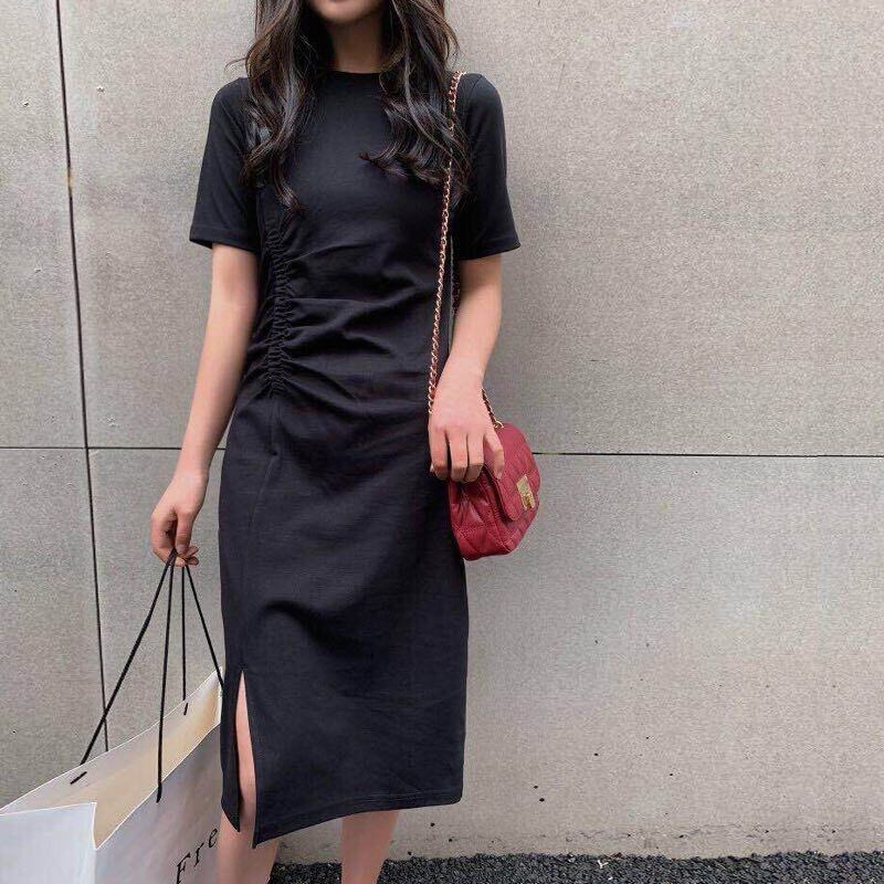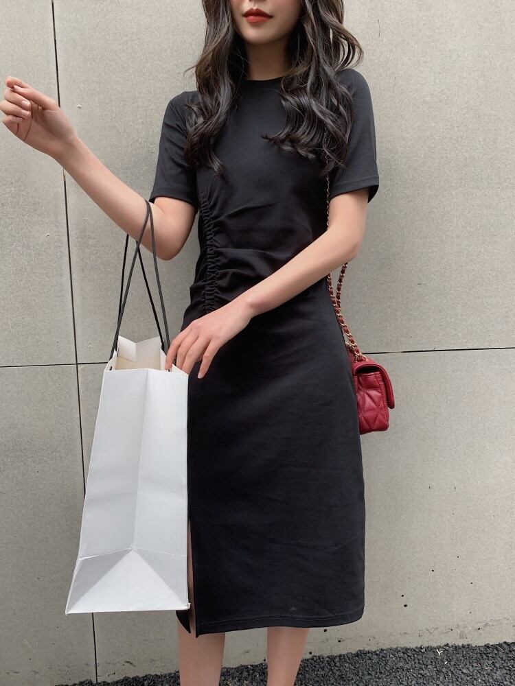 半袖ワンピース. ワンピース. ドレス. Tシャツワンピース. コットン. シャーリング. スリット. 薄手. サマーワンピ. Aラインスカート. 韓国. オルチャン. a2837