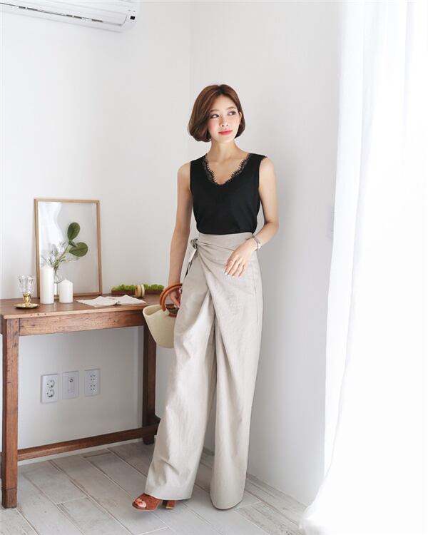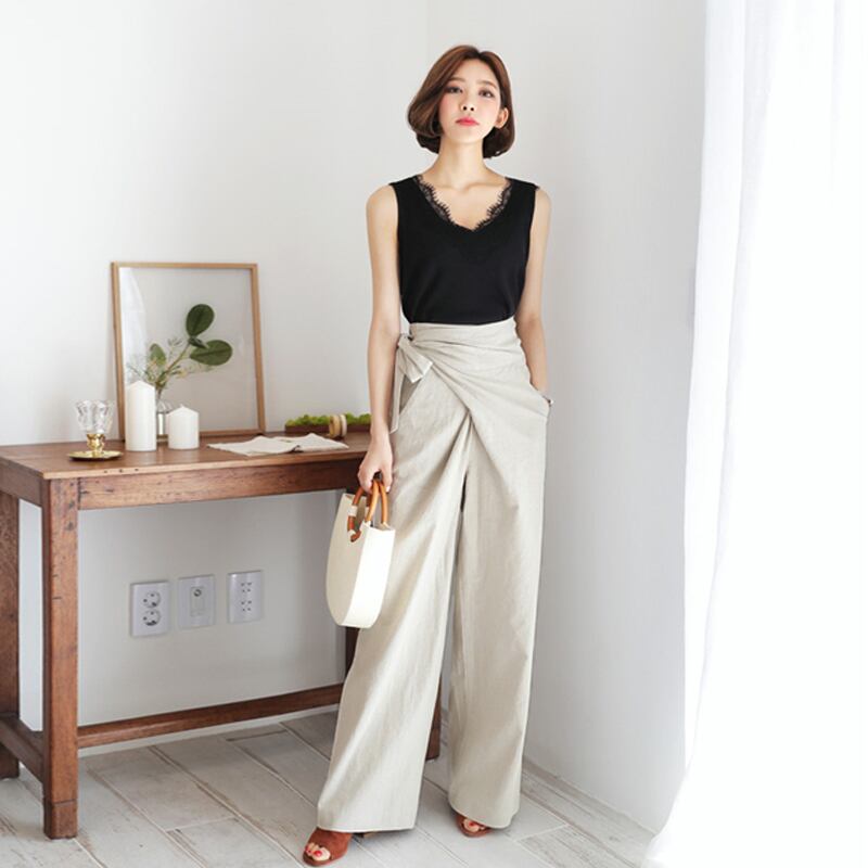 ラップパンツ ウエストリボン ワイドパンツ ハイウエスト カジュアルパンツ. レトロ. ワイドレッグパンツ. ルーズ. 3カラー. a2855