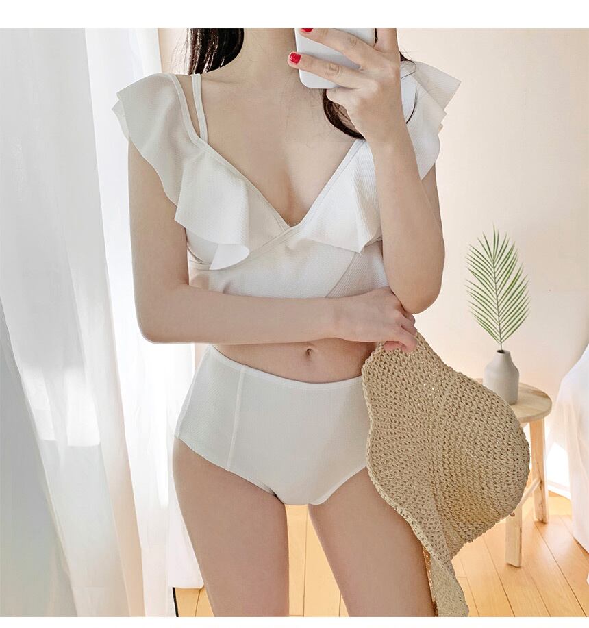 フリルビキニ 水着 オフショルダー ビキニ ハイウエスト フレア 無地 肩出し シンプル フェミニン ガーリー きれいめ 夏 ビーチ 海 プール リゾート a2969
