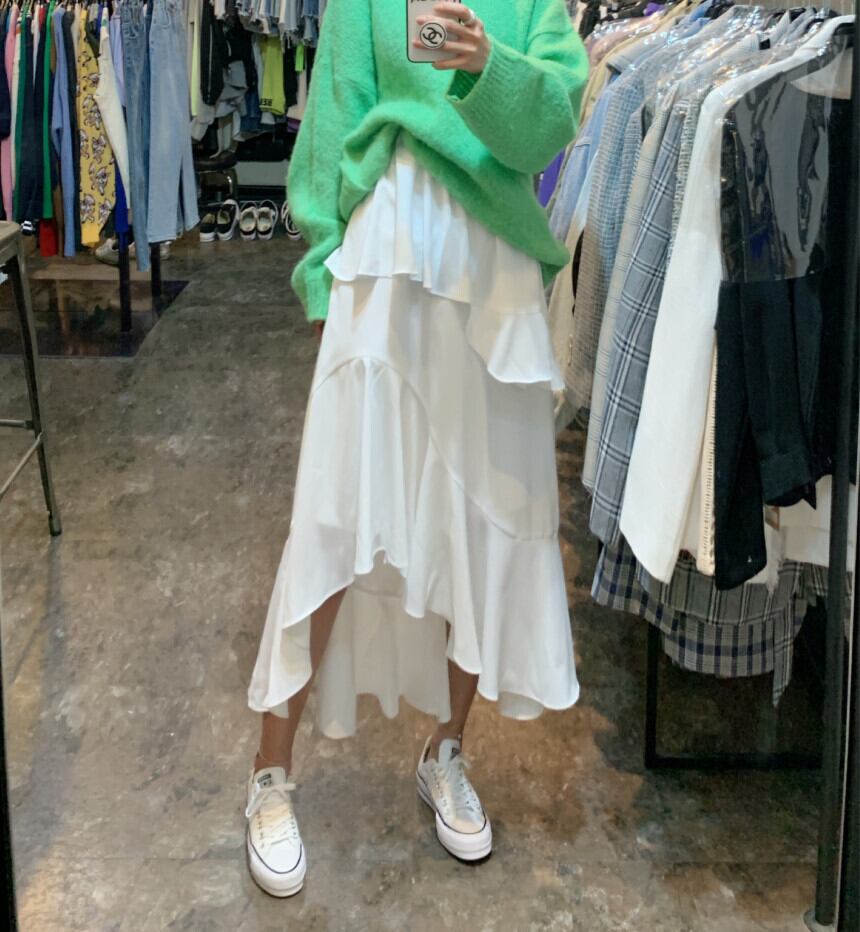 フリルスカート アシメントリー スカート 不規則 ティアード Aラインスカート. 韓国 オルチャン a2885