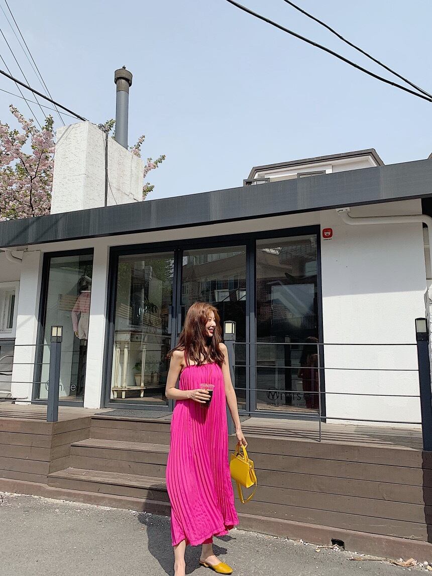プリーツ キャミソールワンピース シフォン ロング ワンピース サマードレス ストラップ ドレス キャミソール ルーズ 韓国 夏 ビーチ 海 プール ホリデースタイル a2907