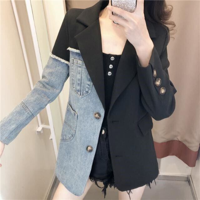 デニムステッチジャケット デニムジャケット スーツジャケット アシメントリー ジャケット ルーズ ストリート アメカジ 春夏秋 韓国 オシャレ a2913