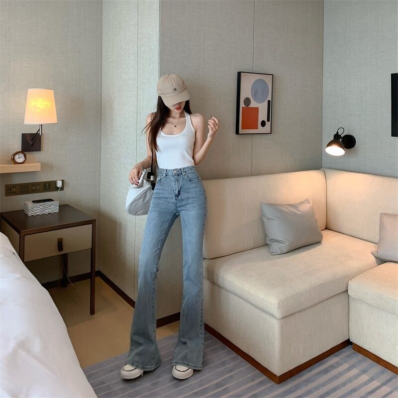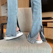 フレア スリット ジーンズ デニム ストレートジーンズ パンツ ハイウエスト ワイドレッグ スリム 韓国. a2928
