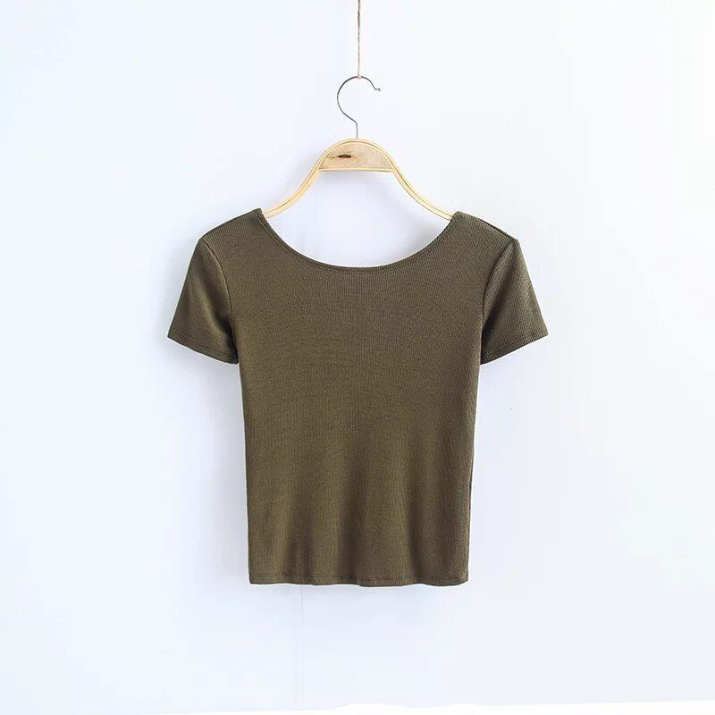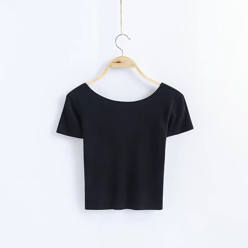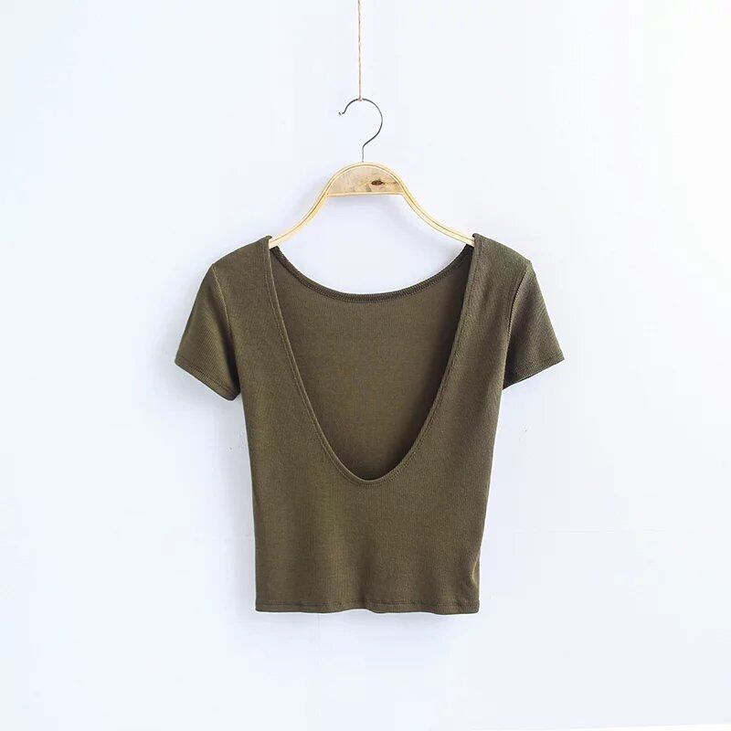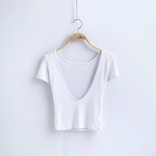バックオープン 半袖Tシャツ 無地 半袖 Tシャツ スリム ストレッチ へそ出し ショート セクシー ストリート アメカジコーデ 夏 トレンド 4カラー a2938