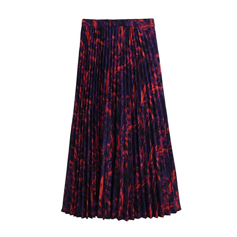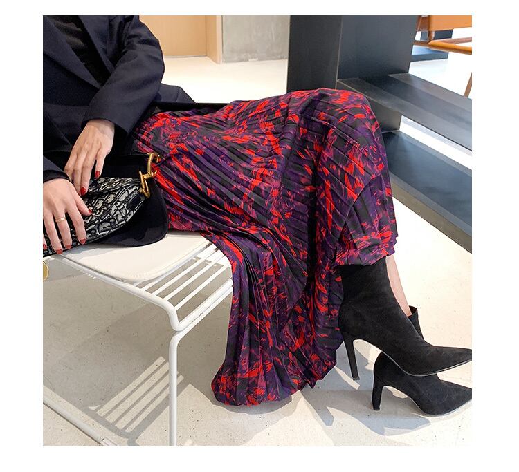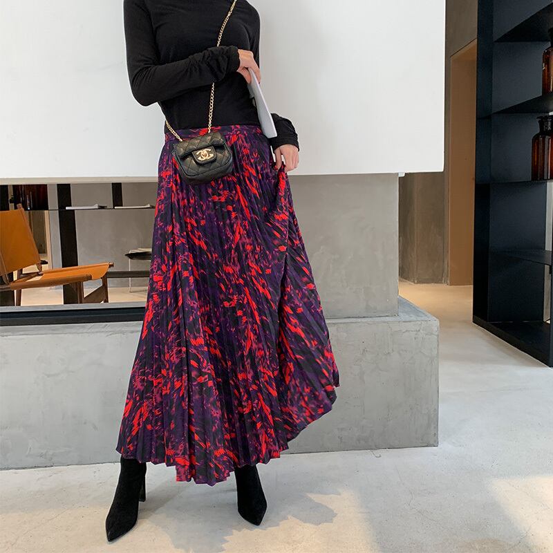 Aラインプリーツスカート フローラル スカート プリーツスカート レトロ 韓国 ニッチ ハイウエスト a2941