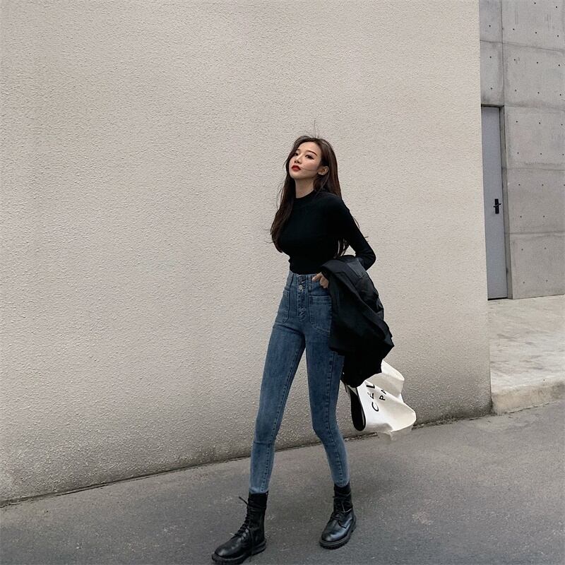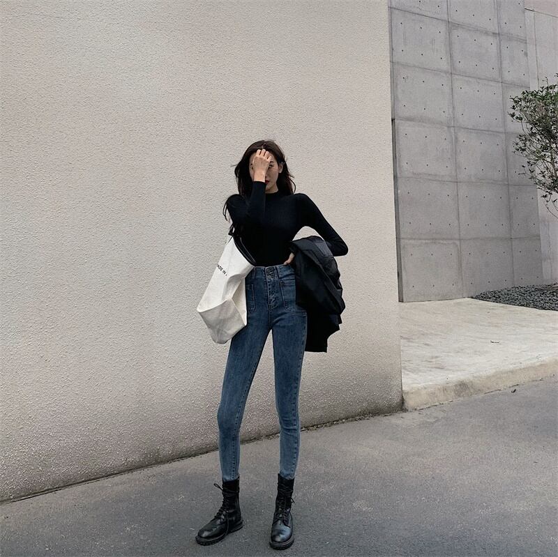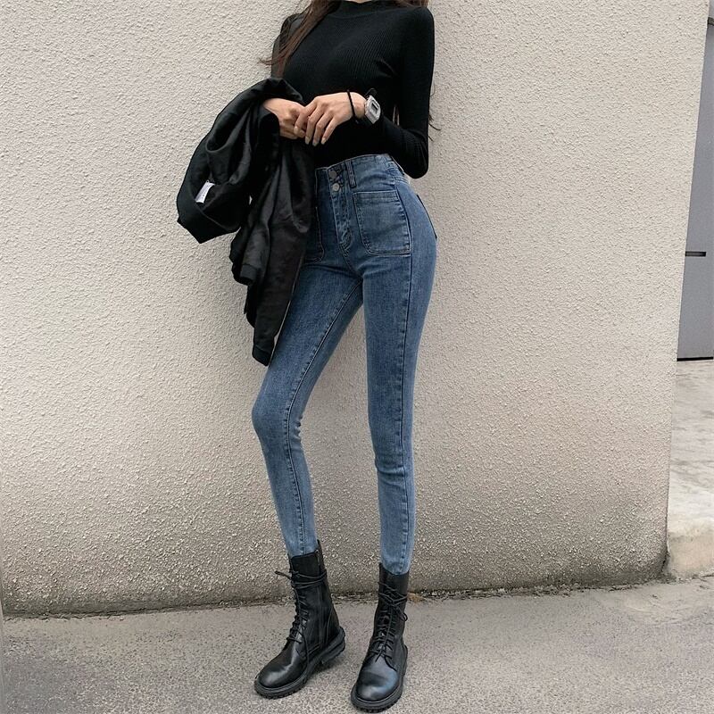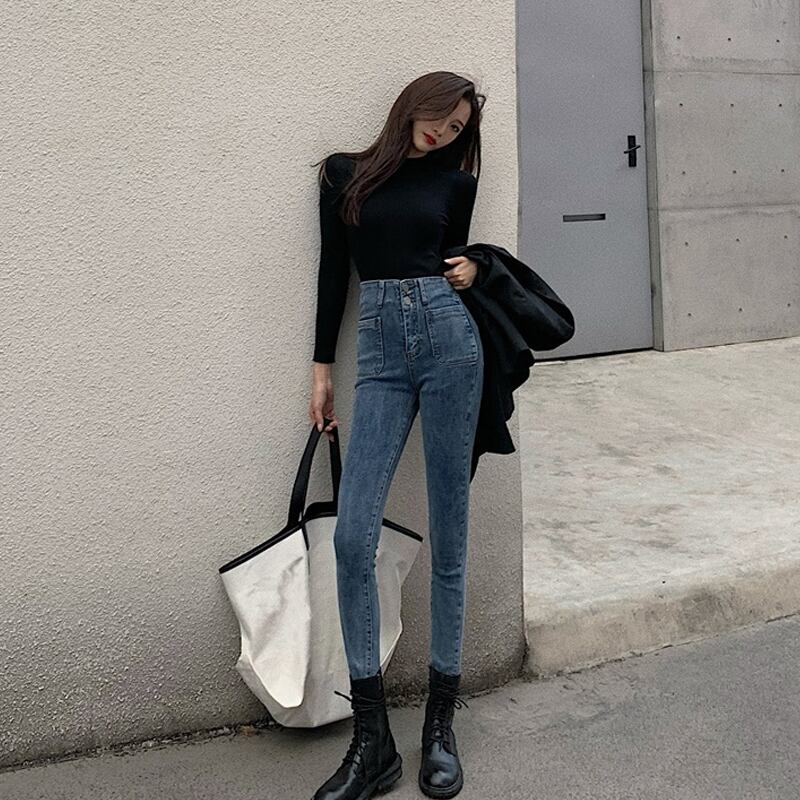 ハイウエストスキニージーンズ フレンチデニム 美脚 ストレッチ タイト フィット デニム ジーンズ スキニーデニム ストレッチジーンズ. 韓国 オルチャン a2945
