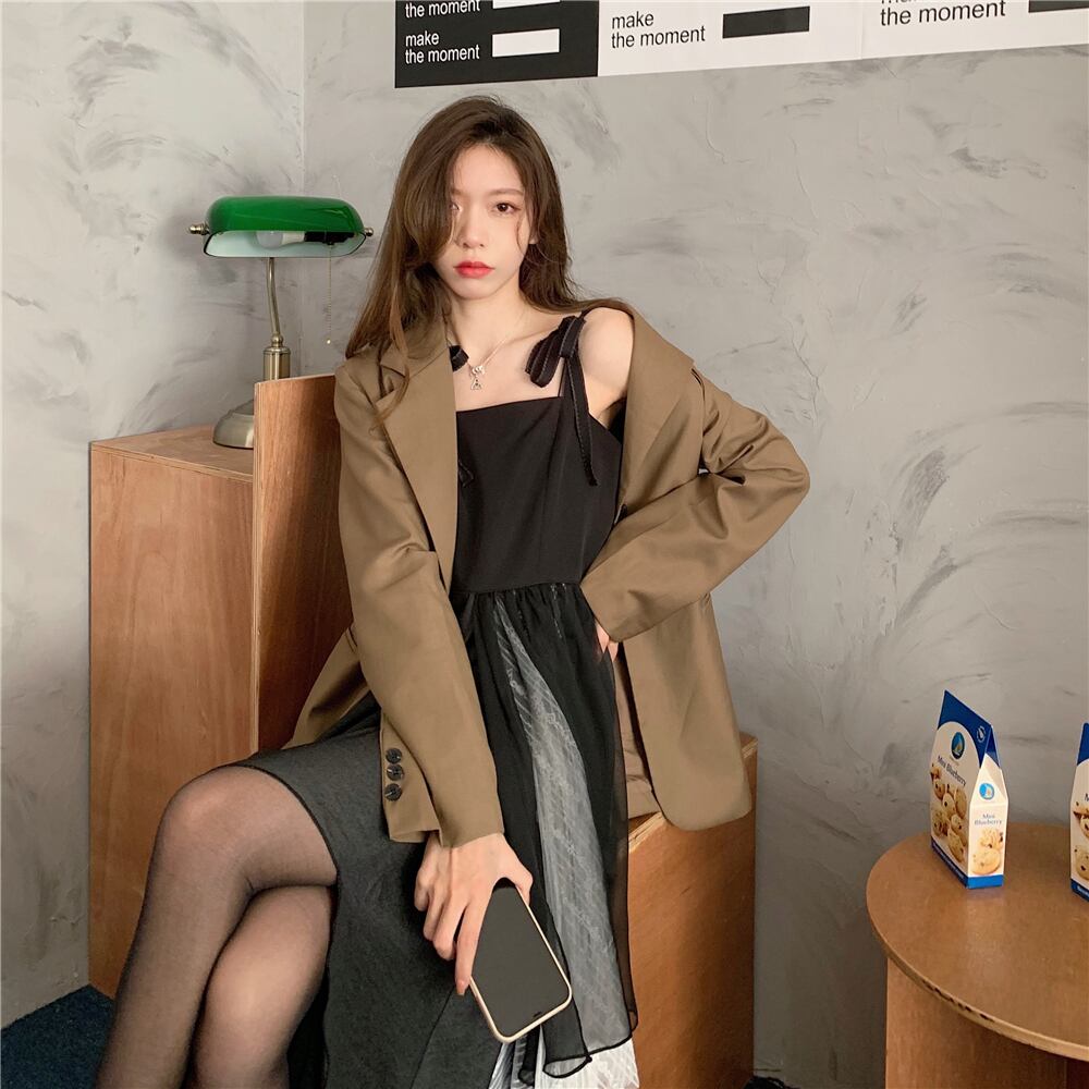 キャミソール メッシュワンピース サスペンダースカート アシメントリー ワンピース ルーズ モード系 ブラックコーデ a2950