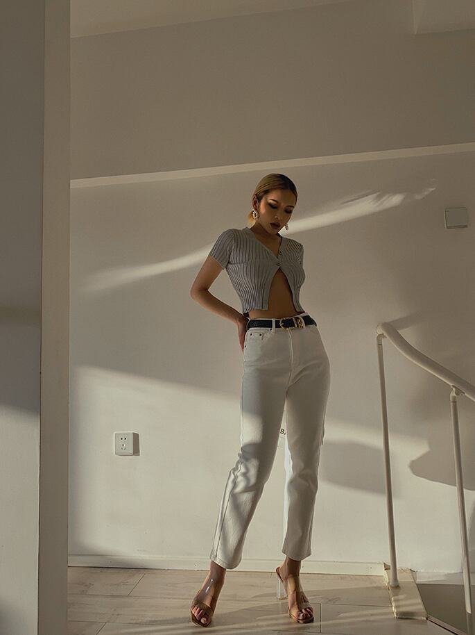 トップスを選ばずどんなスタイルにも合わせやすいデザインです^^